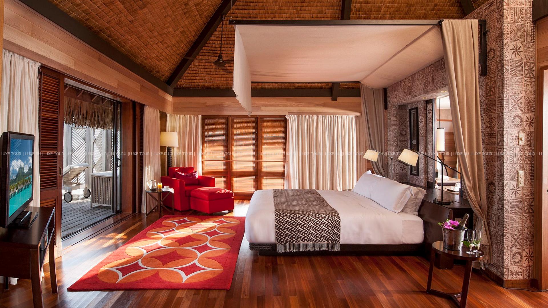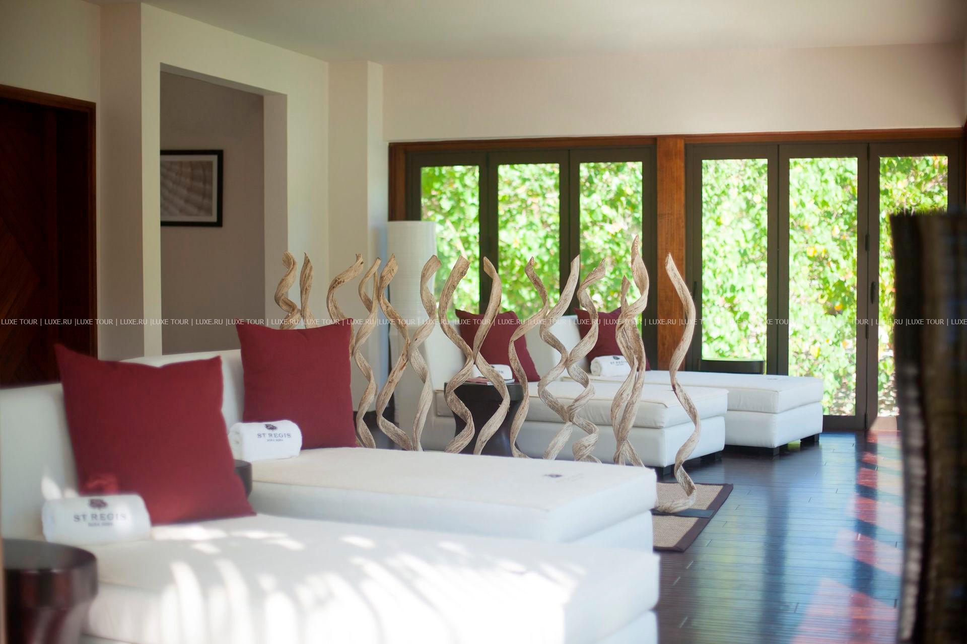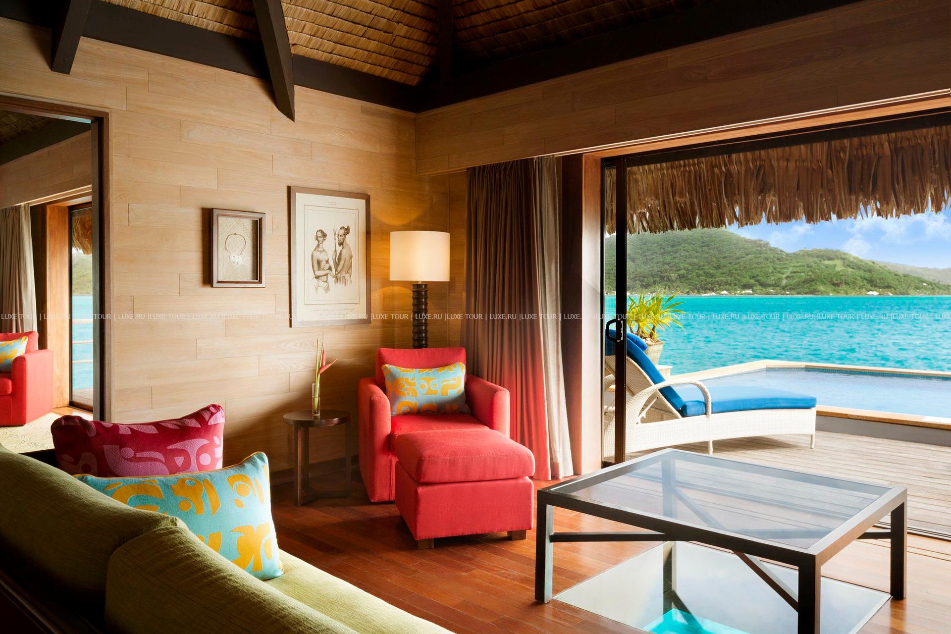 Комфортабельные виллы The St. Regis Resort, Bora Bora расположились среди пышной зелени тропического сада, у бирюзовых вод живописной лагуны, на небольшом коралловом островке Motu Ome's, недалеко от центрального острова атолла Бора-Бора. В просторных номерах – элегантные интерьеры, сочетающие современный дизайн и полинезийские традиции, с полами и отделкой из дерева, удобной мебелью, изысканными элементами декора, просторными террасами с великолепным видом на лагуну и окружающие ландшафты. Гостям всех вилл предоставляются услуги дворецкого. Отель располагает Оздоровительным/Спа Центром Miri Miri Spa площадью 1170 кв.м, расположенном на уединенном островке в лагуне, и включающим: сауну, турецкую баню, душ Vichy, гидромассажную ванну, тренажерный зал, студию аэробики, йоги и Pilates, салон красоты, кабинеты маникюра и педикюра, а также 7 процедурных кабинетов, предлагающих широкий спектр услуг по уходу за здоровьем и внешностью, основанных на традиционных и современных методиках острова Таити и тихоокеанского побережья.