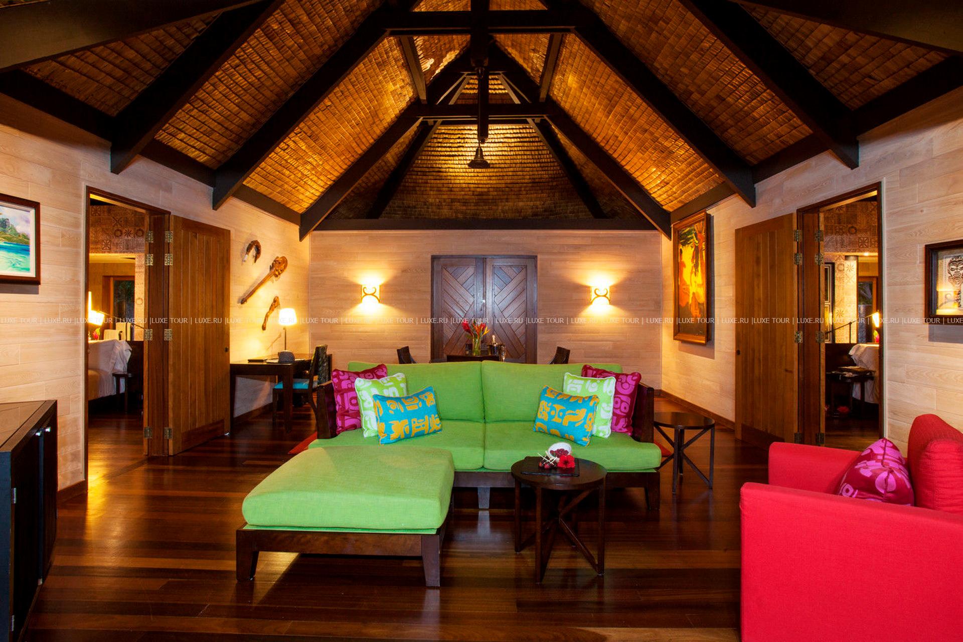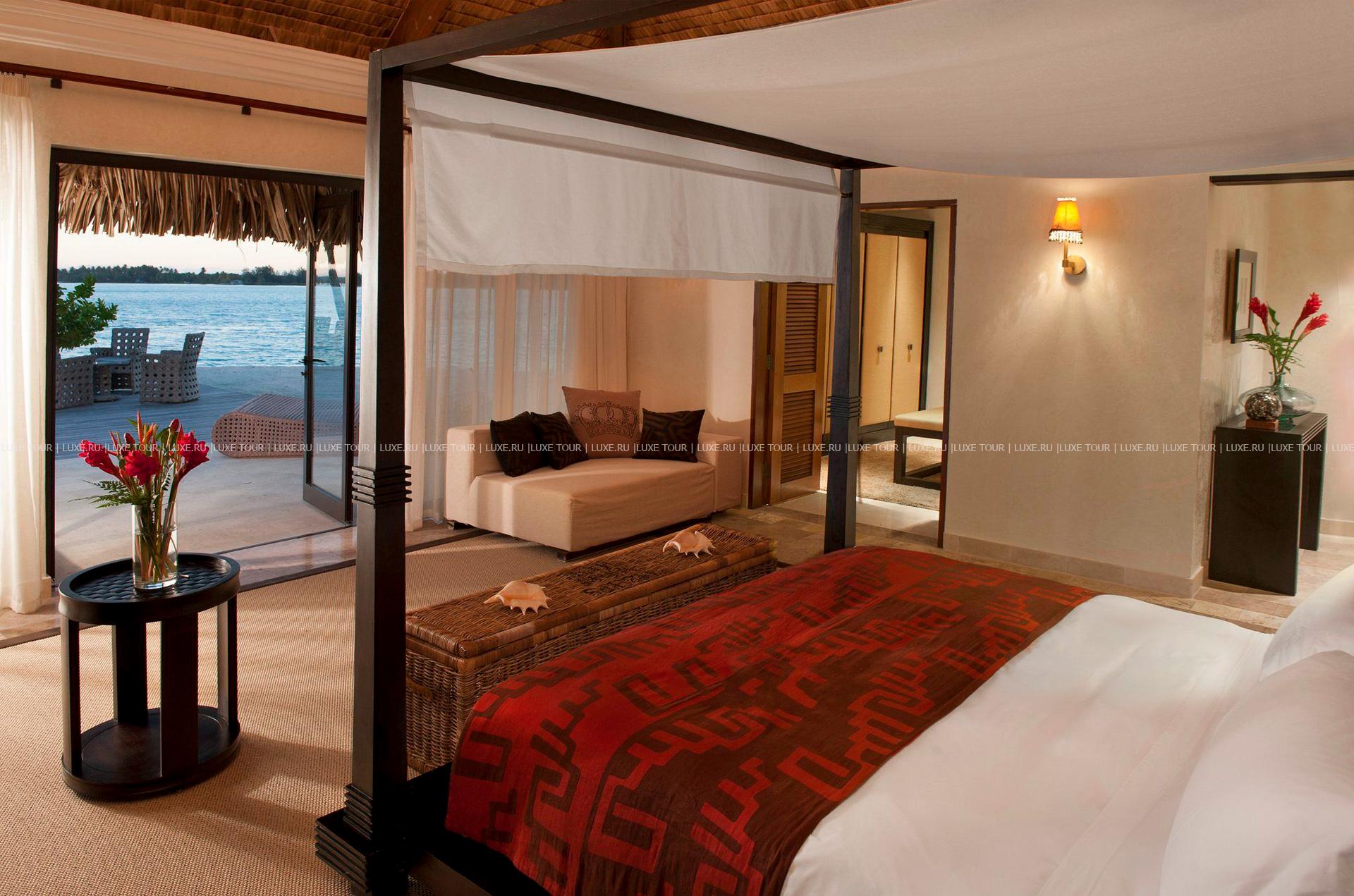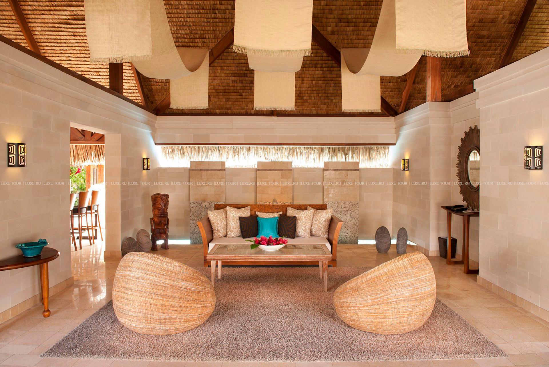 Комфортабельные виллы The St. Regis Resort, Bora Bora расположились среди пышной зелени тропического сада, у бирюзовых вод живописной лагуны, на небольшом коралловом островке Motu Ome's, недалеко от центрального острова атолла Бора-Бора. В просторных номерах – элегантные интерьеры, сочетающие современный дизайн и полинезийские традиции, с полами и отделкой из дерева, удобной мебелью, изысканными элементами декора, просторными террасами с великолепным видом на лагуну и окружающие ландшафты. Гостям всех вилл предоставляются услуги дворецкого. Отель располагает Оздоровительным/Спа Центром Miri Miri Spa площадью 1170 кв.м, расположенном на уединенном островке в лагуне, и включающим: сауну, турецкую баню, душ Vichy, гидромассажную ванну, тренажерный зал, студию аэробики, йоги и Pilates, салон красоты, кабинеты маникюра и педикюра, а также 7 процедурных кабинетов, предлагающих широкий спектр услуг по уходу за здоровьем и внешностью, основанных на традиционных и современных методиках острова Таити и тихоокеанского побережья.