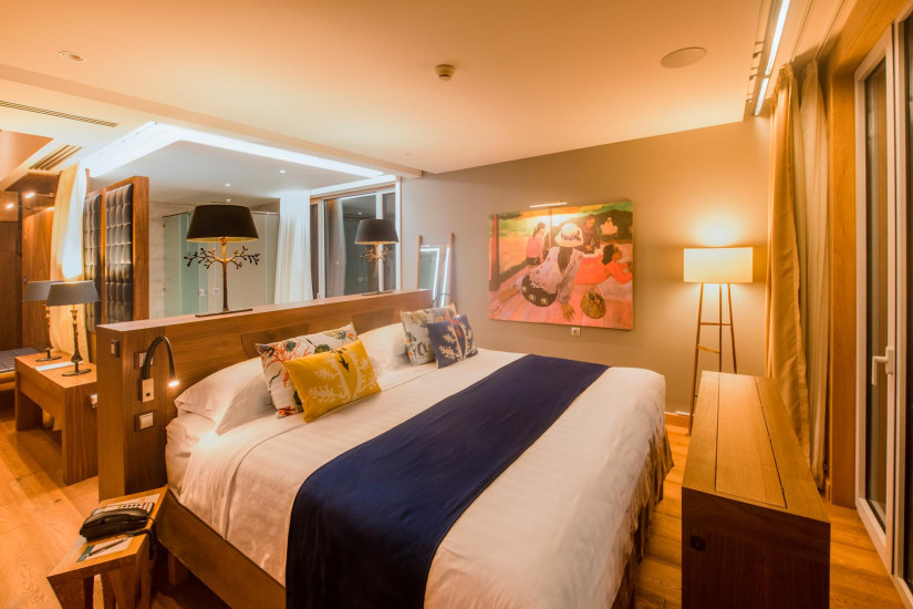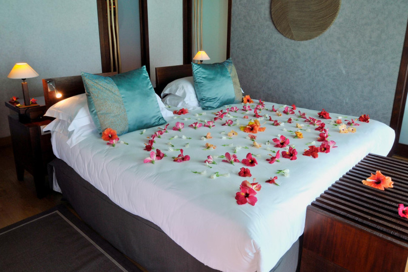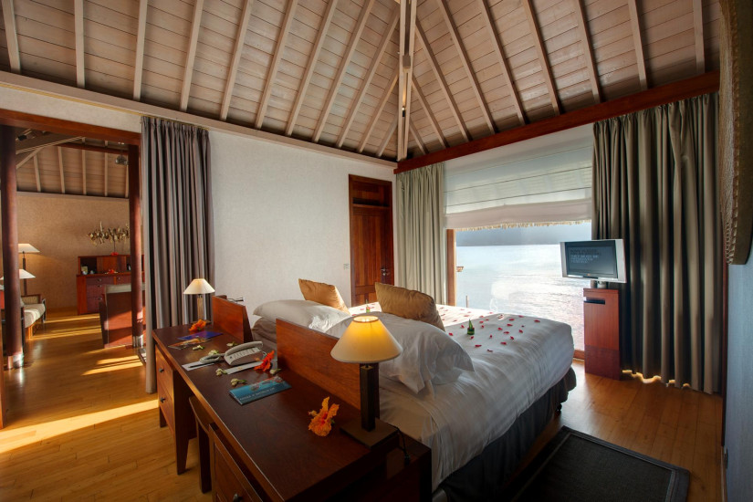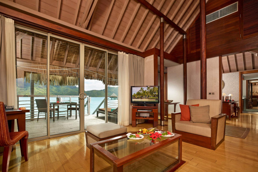 - В отеле 80 комфортабельных вилл различных категорий, включая 21 Emerald Overwater Villas, 24 Sapphire Overwater Villas и 35 Diamond Overwater Villas. В номерах – элегантные интерьеры, сочетающие современный дизайн и полинезийские традиции: полы и отделка из натурального дерева, удобная мебель и оригинальные элементы декора из местных материалов, с просторных террас открывается великолепный вид на лагуну и пышные сады. Также виллы имеют инновационную систему кондиционирования, основанную на использовании морской воды.