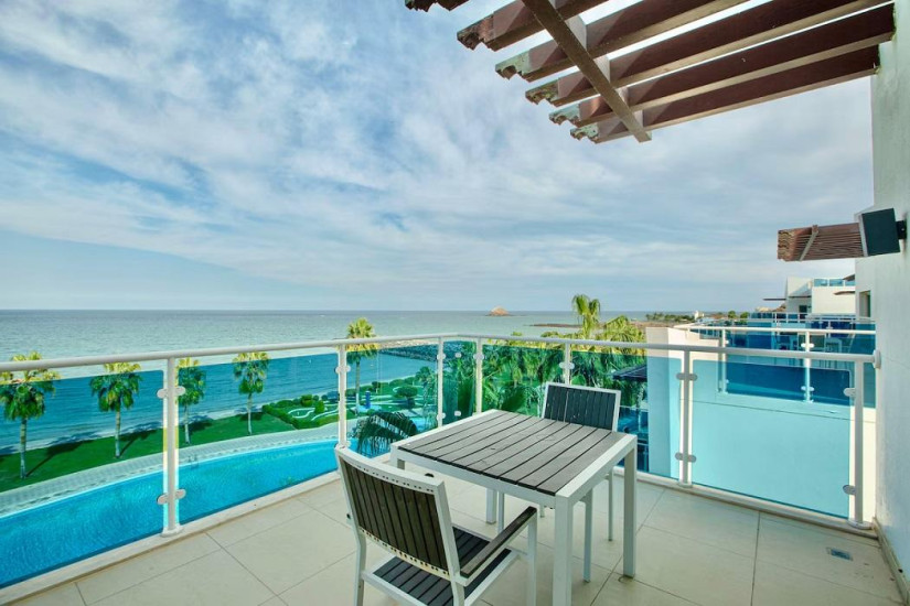 - В отеле комфортабельные номера различных категорий. В номерах – элегантные современные интерьеры с удобной мебелью, с балконов и террас номеров открывается чудесный вид на море и окружающие ландшафты.