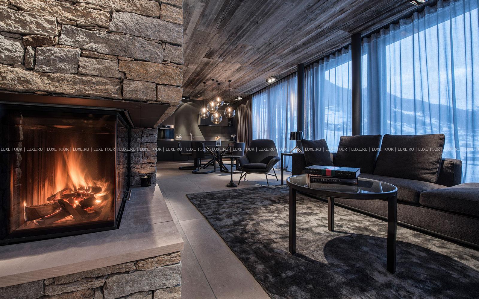Элегантный бар и лаундж Minotti с открытым камином и живой музыкой по вечерам – прекрасное место для отдыха après-ski.