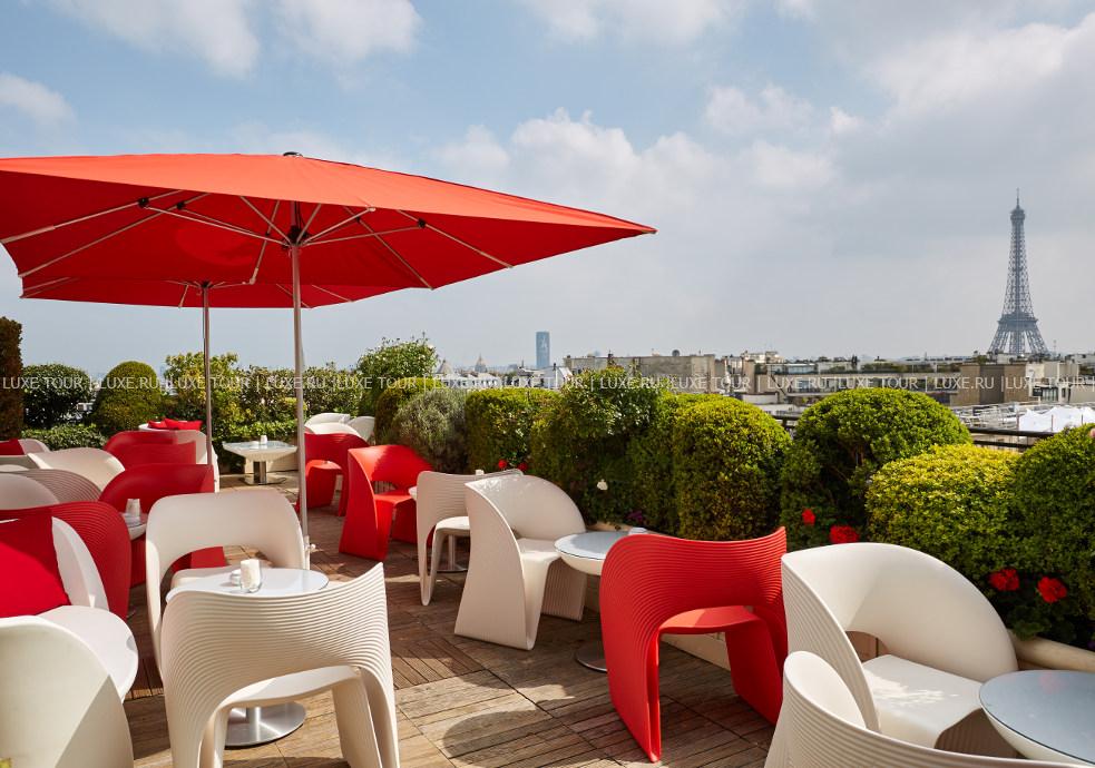 • С мая по сентябрь насладиться превосходной кухней и напитками, а также потрясающим панорамным видом на Париж можно на открытой террасе на крыше отеля.