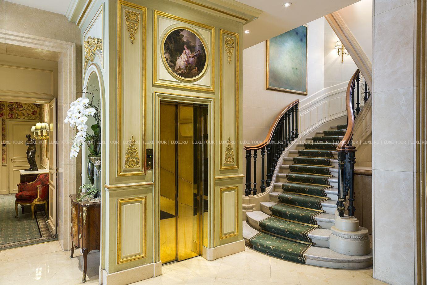 Трехэтажный особняк, в котором сегодня размещается гостиница, был построен в 1857 году Эдмоно Пти, а в 1923 году приобретен бывшим владельцем отеля George V Андре Симоном Терраем, который и перевез оттуда часть обстановки. Изделия из фарфора, старинные гравюры, мебель из дорогих сортов дерева, пышные ткани, предметы искусства и антикварные мелочи, хрустальные люстры, бронзовые и серебряные предметы, ванные комнаты, облицованные серым, бежевым, зеленым и голубым мрамором, помогают воссоздать изысканный декор эпохи Людовика XV, Луи-Филиппа, Наполеона или периода Регентства. Открывающиеся из номеров виды на сады внутреннего двора, улицу rue Jean-Goujon, крыши парижских домов и Эйфелеву башню прекрасно соотносятся с великолепным убранством номеров и холлов гостиницы, полностью соответствующего духу центрального Парижа. Изящество и стиль, помпезность и элегантность, красота и оригинальные тенденции в оформлении – всемирно известному дизайнеру Пьеру-Иву Рошону, работающему над восстановлением былого облика величественного отеля с 1984 года, удалось сохранить атмосферу и традиции старого отеля, дополнив их технологическими новинками и современными представлениями о комфорте. Также к услугам гостей: ресторан и бар.
