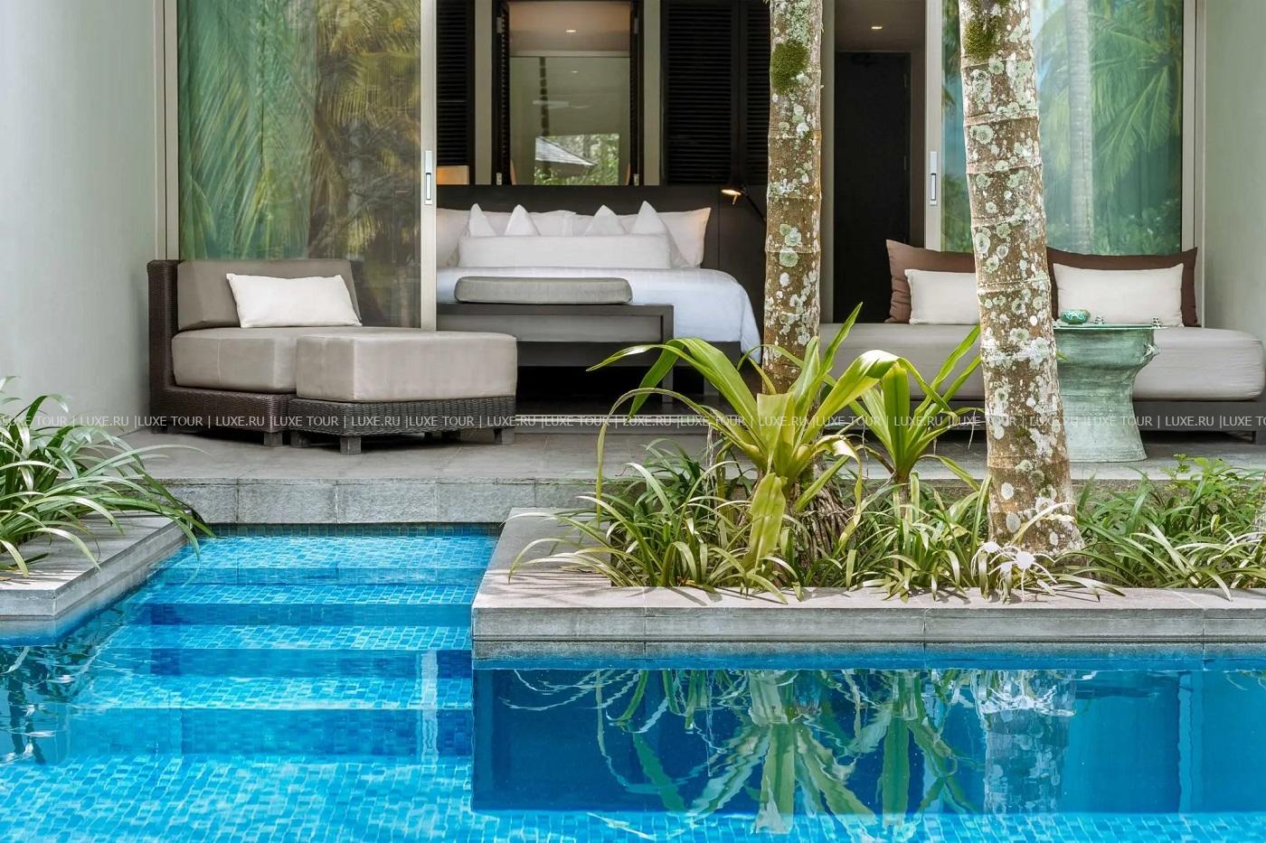 55 м2. Состоит из спальни с кроватью king-size, зоны отдыха, ванной комнаты, террасы c видом на сады и выходом к бассейну-лагуне. Максимальное размещение – 2 человека.