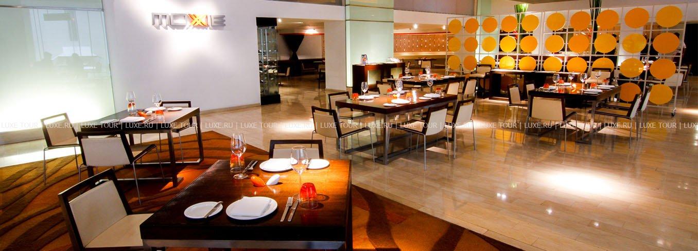 Стильный ресторан Moxie предлагает широкий выбор блюд интернациональной кухни.