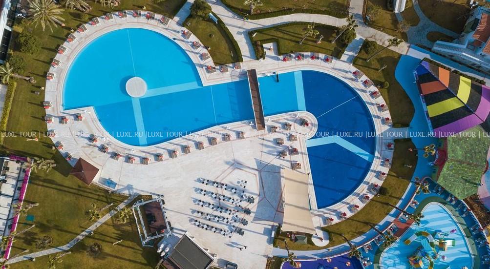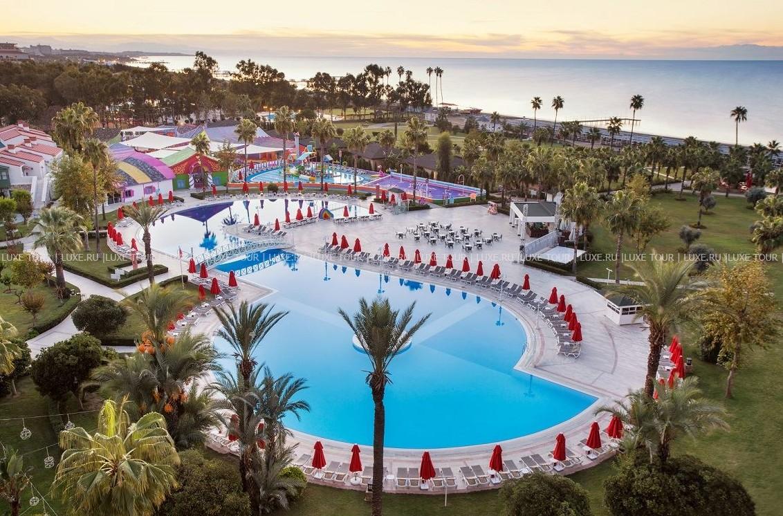 Грандиозный комплекс, занимающий площадь 94 кв. км, предлагает гостям несколько ресторанов и баров, крытый бассейн с подогревом, открытый бассейн с водными горками, 3 открытых бассейна, детский бассейн, теннисные корты, площадку для сквоша, площадки для футбола, волейбола, мини-клубы для детей, а также спа-центр Lilium Spa Center, где доступны тренажерный зал, турецкая баня, сауна и разнообразные лечебно-оздоровительные программы.