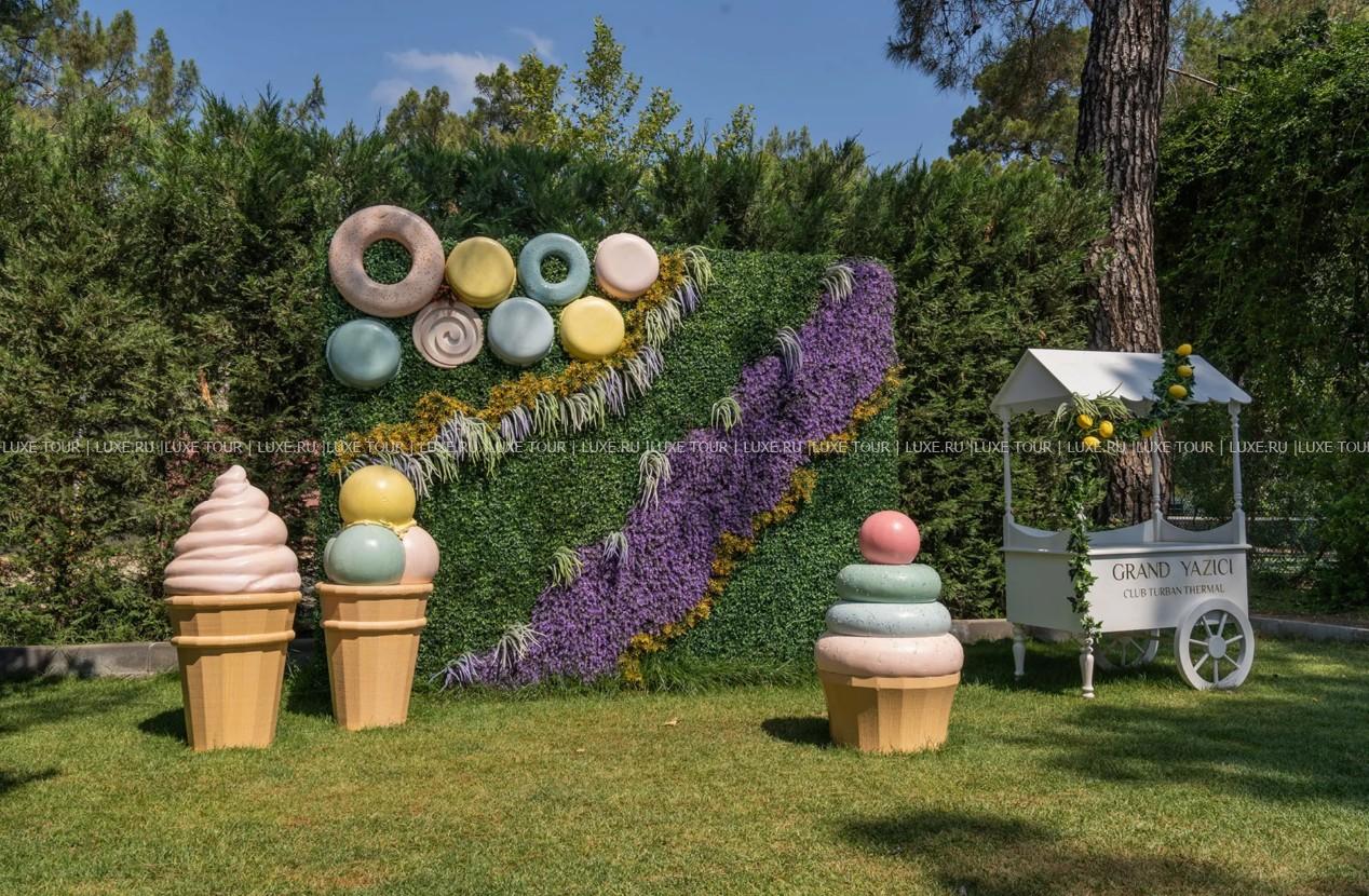 Возвышаясь посреди великолепного соснового парка, в двух шагах от золотистых песков благоустроенного пляжа и переливающейся зелеными и синими красками глади моря, современные здания гостиницы Grand Yazici Club Turban давно стали неотъемлемой и органичной частью комплекса, гармонируя с великолепием пейзажей как искусным оформлением экстерьера, так и продуманным до мелочей декором номеров и холлов. Благодаря мастерству местных дизайнеров каждый номер отмечен особенным шармом и являет собой образец стилистического совершенства. Мастерам удалось объединить разнородные элементы: дизайнерскую мебель, ткани теплой расцветки, современные технологические новинки и цветочные композиции, создав целостный ансамбль, за внешней простотой которого скрываются скрупулезный расчет и безупречный вкус.