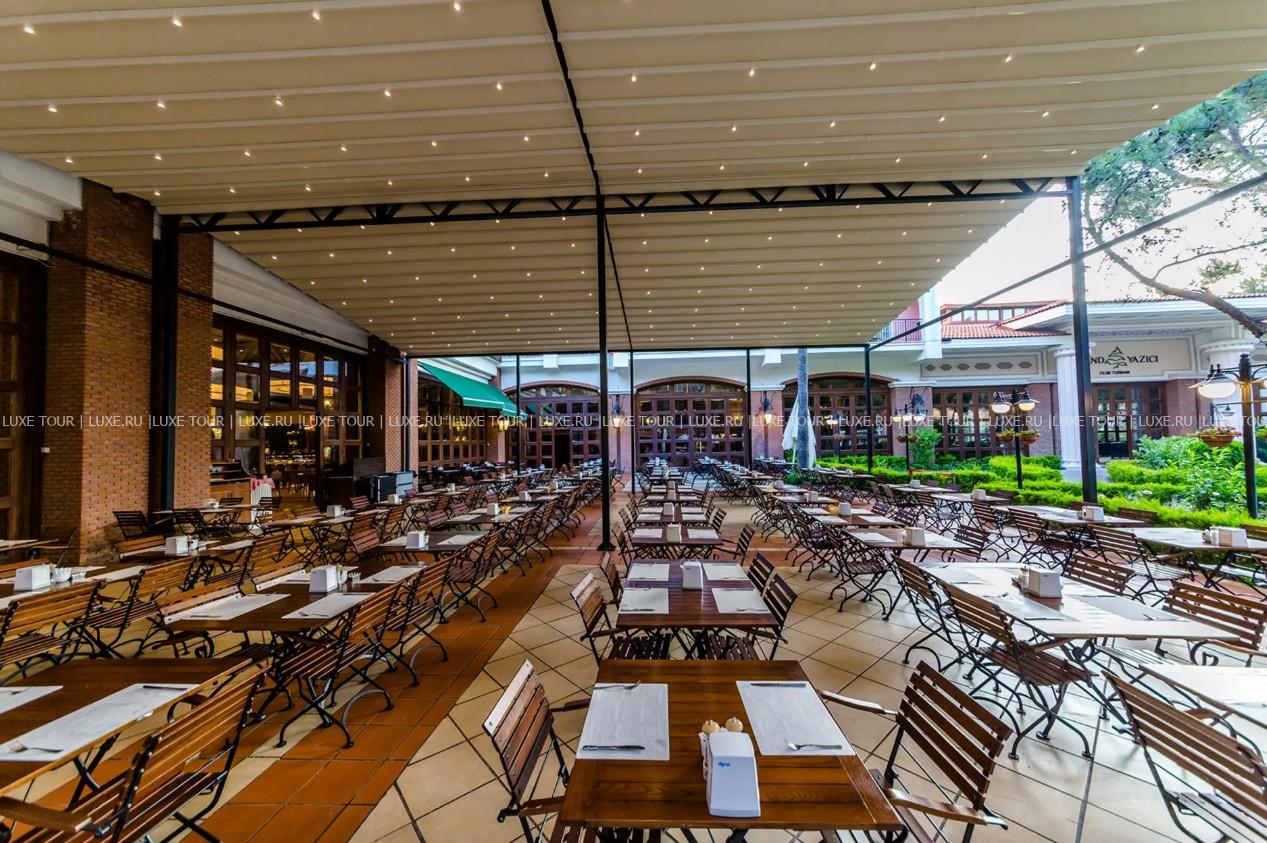 На территории отеля Grand Yazici Club Turban гостям доступны 5 ресторанов, 5 баров, кафе и дискотека, частный пляж, открытый бассейн, крытый бассейн, детский бассейн с водными горками, теннисный корт, пляжный волейбол, площадки для волейбола, мини-футбола и баскетбола, а также спа-центр, предлагающий крытый бассейн, турецкую баню и разнообразные лечебно-оздоровительные программы.