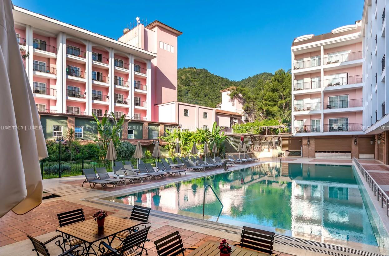 Grand Yazici Club Turban расположен на средиземноморском побережье между Мармарисом (5 км) и Ичмелером (3 км) в 90 км от международного аэропорта. Гости, несомненно, будут очарованы Мармарисом, маленьким портовым городком, окружающим калейдоскопом многочисленных бухточек, волшебных видов, лежащих неподалеку античных центров и современных пристаней, куда спешат величественные белоснежные яхты. Некогда рыбацкий поселок, а теперь один из известнейших центров международного туризма, Мармарис притягивает гостей роскошными витринами дорогих магазинов и бутиков, чарующими ароматами ресторанов и удивительным шармом стильных кафе.
