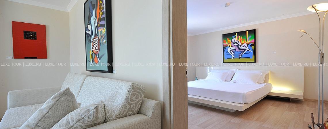 Отель состоит из двух комплексов: из семейного отеля Casa Dell’Arte Luxury Family Resort, насчитывающего 36 просторных семейных номеров и отеля The Residence, в котором располагаются 12 номеров категории Suite и одна частная вилла. Все номера коплекса Residence украшены в индивидуальном стиле, просматривающемся в каждой детали оформления, в искусной подаче и гармоничном сочетании с окружающими пейзажами. Каждый номер представляет собой миниатюрную художественную галерею, где в стройном окружении дизайнерской мебели, роскошных тканей, пышных ковров, расписанных сосудов и пышных цветочных композиций представлены подлинные работы таких прославленных турецких мастеров, как Хамит Гереле, Фикрета Муалла, Нури Ием и Мехмета Гюлерюз.