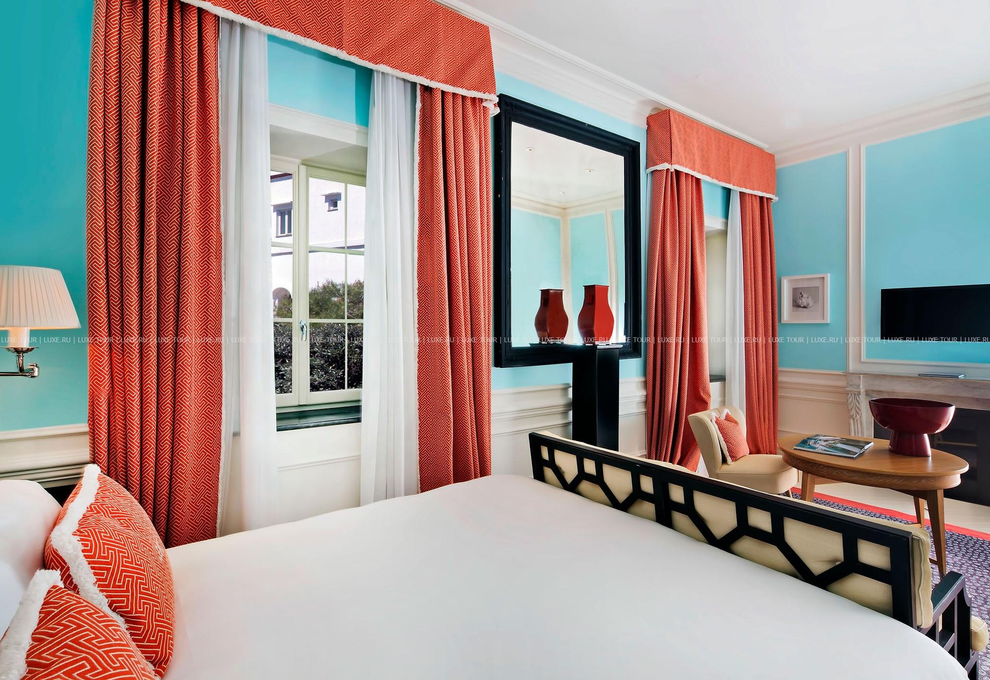За элегантным фасадом гостям открывается изысканный декор, построенный на сочетании современных тенденций и обыгрывающий архитектурный облик здания с грациозными арками, сводчатыми потолками, небольшими лестничными проемами и просторными террасами. Современная дизайнерская мебель, пышные ткани ярких тонов, живописные полотна, оригинальные светильники, мягкие ковры и множество интересных мелочей – каждая деталь дизайна, предложенного всемирно известным дизайнером Мишель Бонан, играет свою существенную роль в целостном ансамбле, создавая индивидуальное настроение каждого номера.
