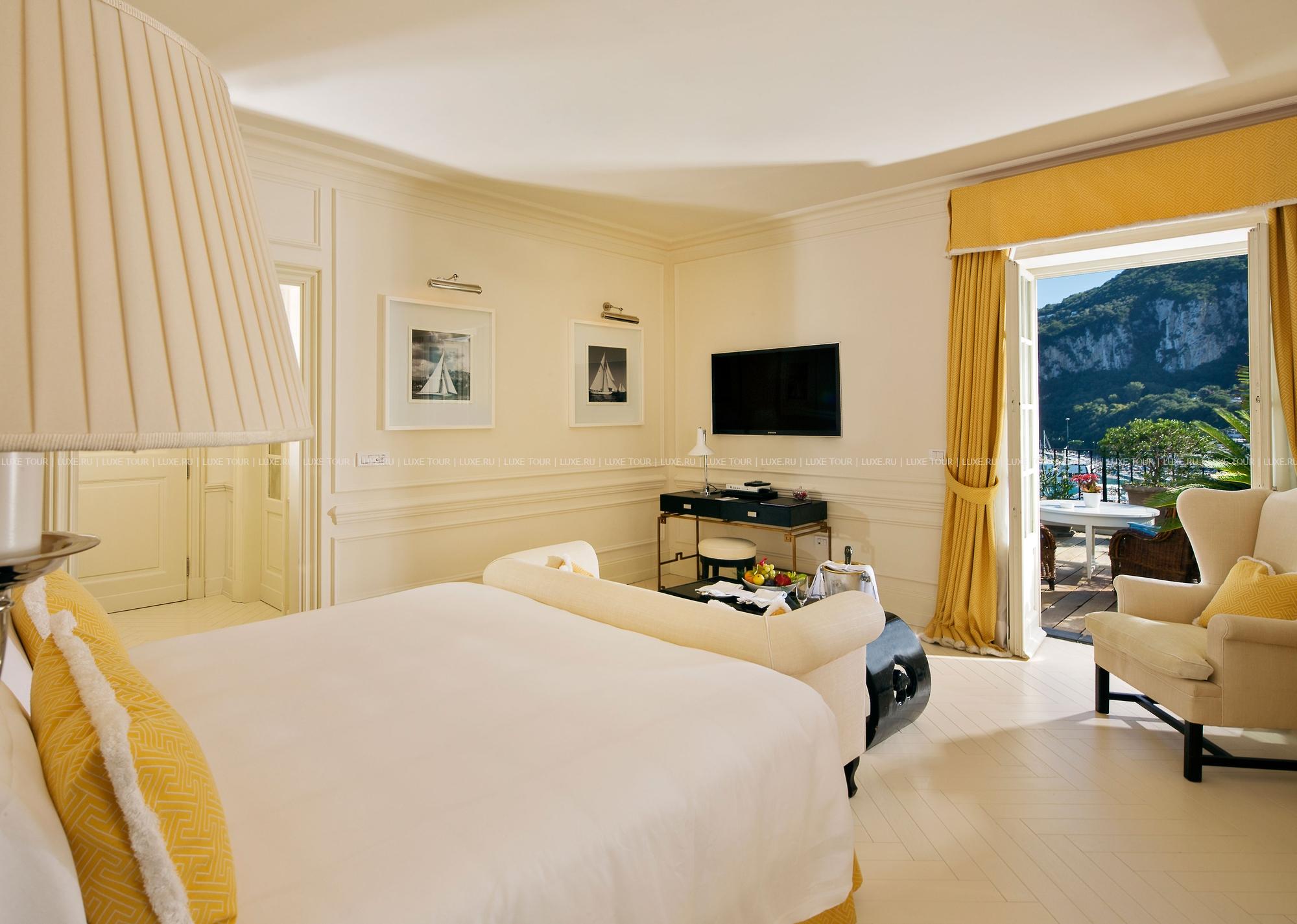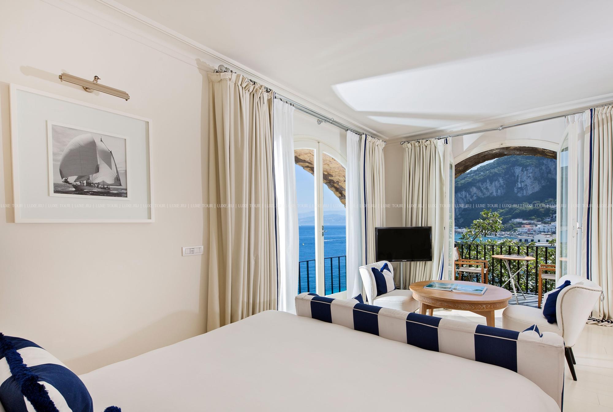 Отель расположен в бухте Marina Grande на острове Капри в 40 минутах на катере (80 минутах на пароме) от Неаполя.