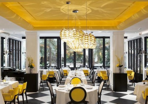 Роскошный и изысканный интерьер Bar du Faubourg выполнен в парижском стиле, где можно насладиться блюдами от Янника Аллено или изысканными коктейлями в компании знаменитостей столицы. предлагается обслуживание номеров.