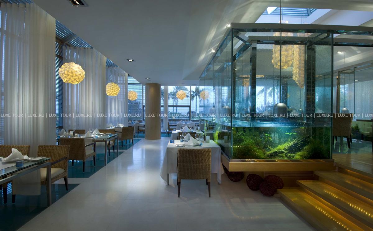 • В стильном ресторане IZA можно отведать деликатесы из свежайших морепродуктов и понаблюдать за экзотическими рыбами в огромном аквариуме, установленном в центре зала.
