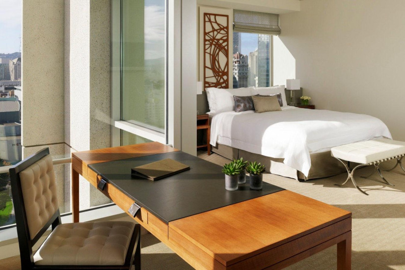 - 139 м2. Номер, отделанный редкими породами дерева и украшенный восточными коврами ручной работы, состоит из спальни с кроватью king-size, гостиной с рабочей зоной и обеденным столом, просторной ванной комнаты с джакузи и ливневым душем, гостевой туалетной комнаты. Из окон номера открывается великолепный вид на залив и панораму Сан-Франциско. Максимальное размещение - 3 взрослых.
