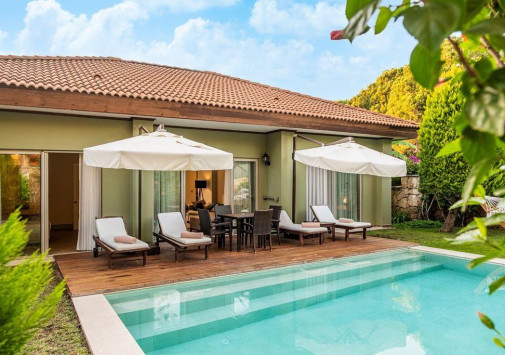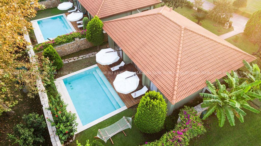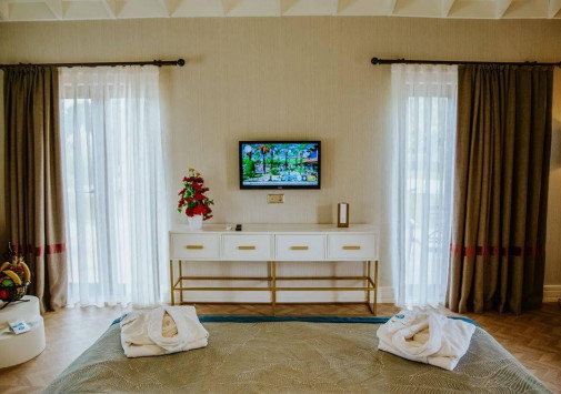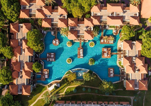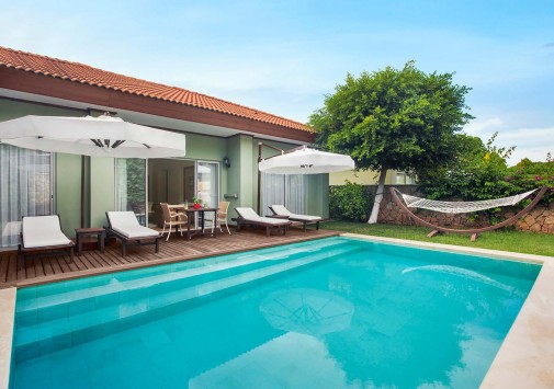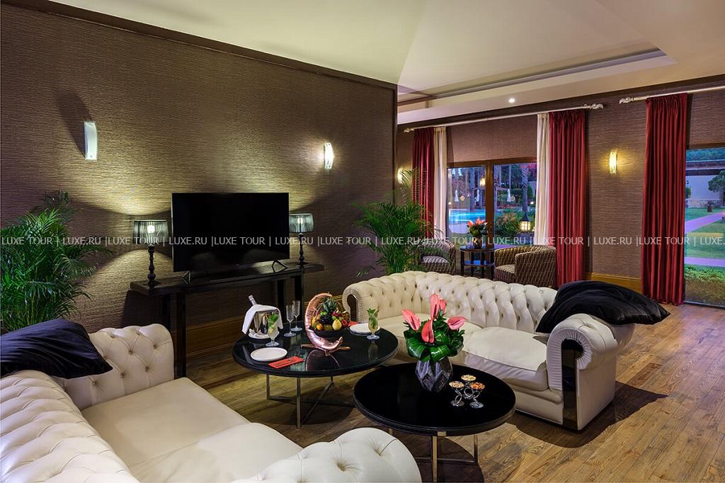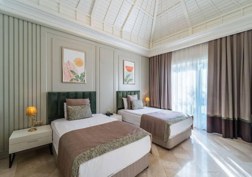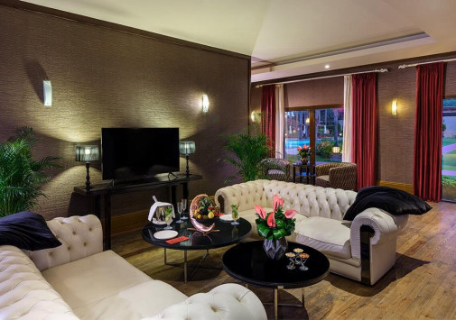 Роскошные виллы IC Hotels Residence, выполненные в стиле стран Юго-Восточной Азии и острова Бали, разместились среди ухоженного тропического сада площадью 70 000 м2, у белоснежного пляжа, омываемого лазурными водами Средиземного моря. Интерьеры комфортабельных вилл, расположенных в тени пышной зелени сада и у сверкающей глади живописного бассейна, отличаются изысканностью стиля: отделка из дорогих тканей, элегантная мебель из благородного дерева, со вкусом подобранные элементы декора.