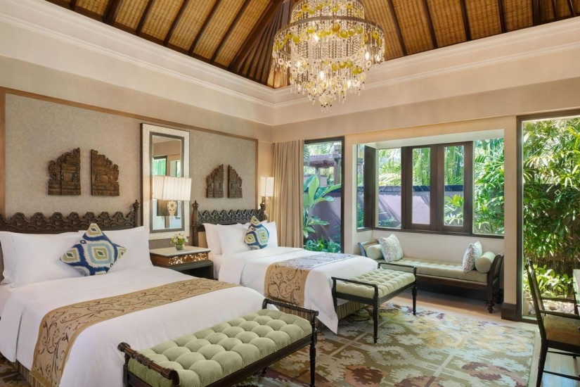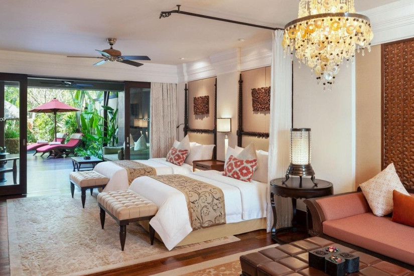 - В отеле 123 комфортабельных номера различных категорий, включая Suites, Villas и Residence. Номера оформлены в балинезийском стиле, полы отделаны красным деревом.