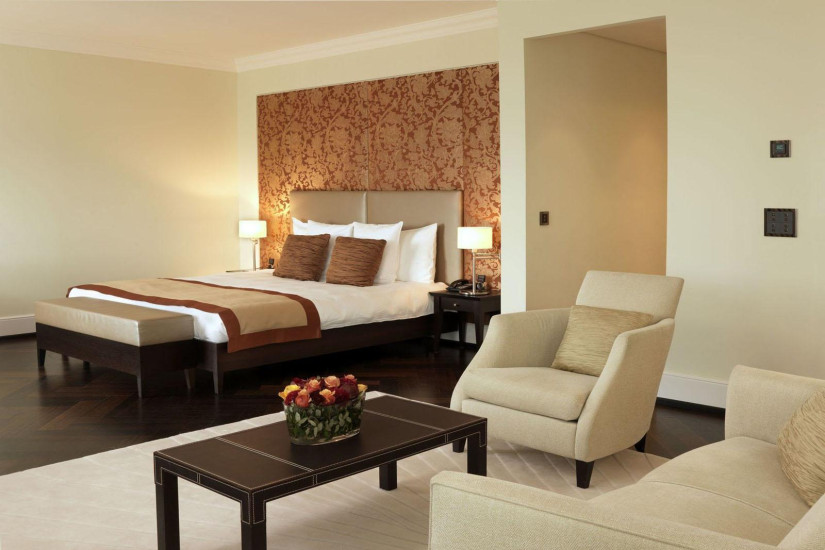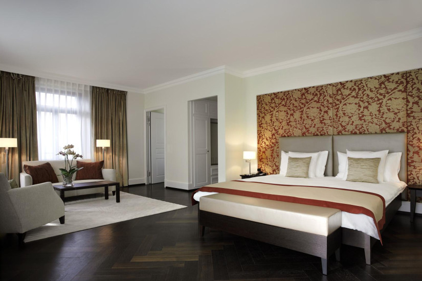 - 170 м2. Состоит из двух спален, гостиной, двух ванных комнат с джакузи, террасы, опоясывающей номер, с панорамным видом на основное историческое здание, Цюрих, озеро и Альпы. Возможно бронирование данного номера с одной спальней. Номера располагаются в крыле Golf.
