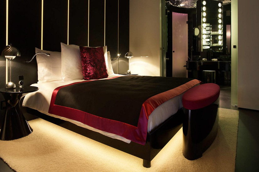 - 170 м2. Посвящен группе Rolling Stones. Расположен на верхнем этаже СПА крыла, обставлен ретро-мебелью в стиле 1960-х годов, включает спальню, ванную комнату, оформленную в черных тонах, с джакузи, паровым душем и сауной, обеденную зону с кухней, комнату для переговоров на 10 человек, террасу с панорамным видом на озеро и основное историческое здание.