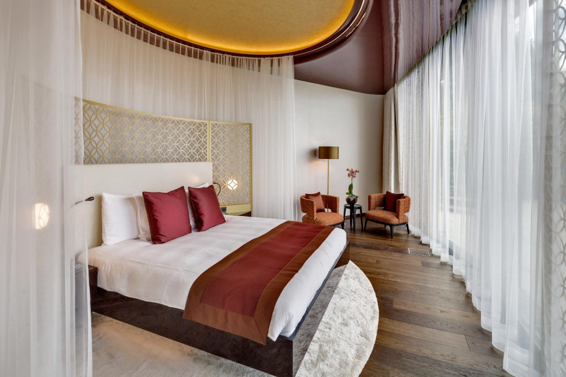 - 170 м2. Назван в честь знаменитой итальянской актрисы Джульетты Мазины. Расположен на верхнем этаже СПА крыла, оформлен в итальянском стиле. Включает 2 спальни, 2 ванные комнаты, отделанных зеленым мрамором, с джакузи (в одной ванне имеется сауна и паровой душ), просторную гостиную с мягкой мебелью от Fendi, бильярдным столом и большим телевизором с плоским экраном, обеденной зоны с кухней, террасу с панорамным видом на парк и озеро.