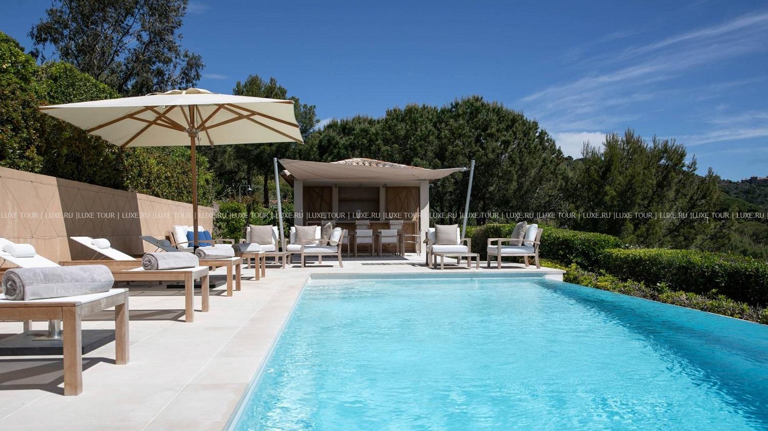 La Réserve Ramatuelle раскинулся среди дивных садов, на склонах живописного холма, спускающегося к сверкающему морю и прекрасным пляжам побережья. Изумительный панорамный вид на морские пейзажи открывается из всех уголков отеля, его элегантный дизайн навеян стилем 1950-60-х годов – Золотым веком Французской Ривьеры, а сервис отвечает самым высоким стандартам. Изящно декорированные номера с террасами и роскошные виллы с несколькими спальнями и собственными бассейнами, гастрономические шедевры от шеф-повара Эрика Канино, награжденного двумя звездами Мишлен, эксклюзивные процедуры в первоклассном Spa-центре, открытый и крытый бассейны, и масса возможностей для спорта и отдыха на любой вкус. La Réserve Ramatuelle – сказочный оазис, «парящий между небом и морем» в уединенном уголке Лазурного берега.