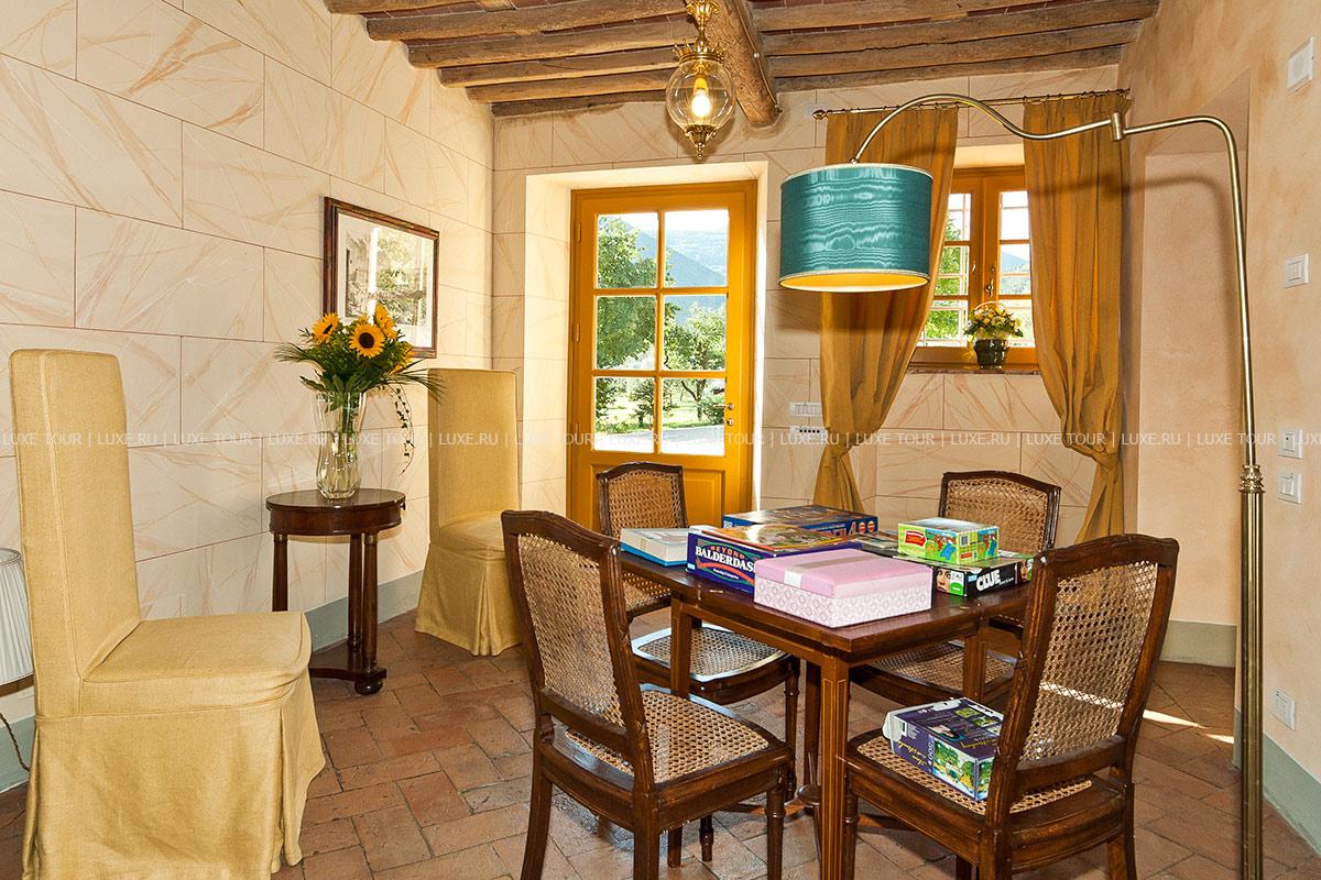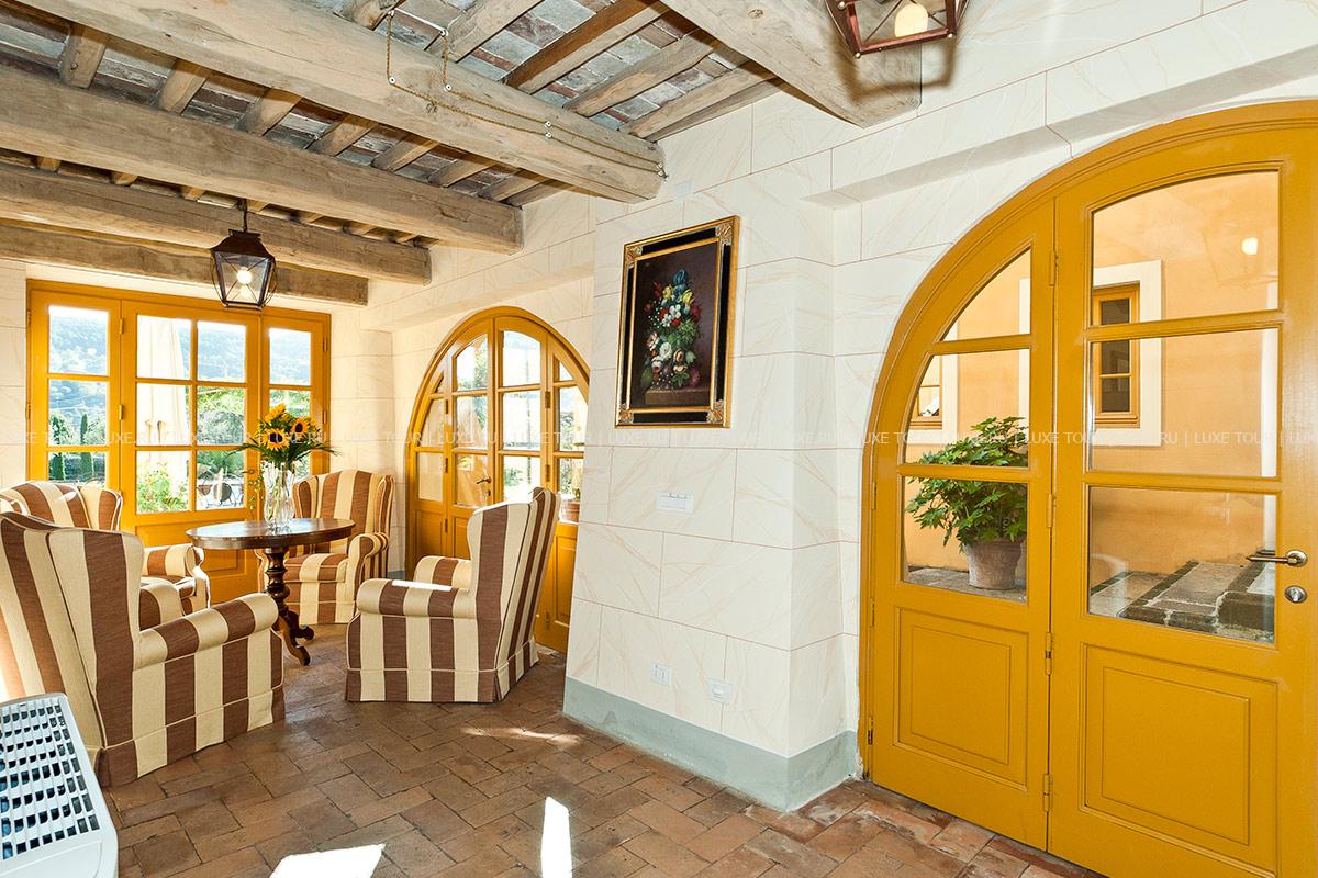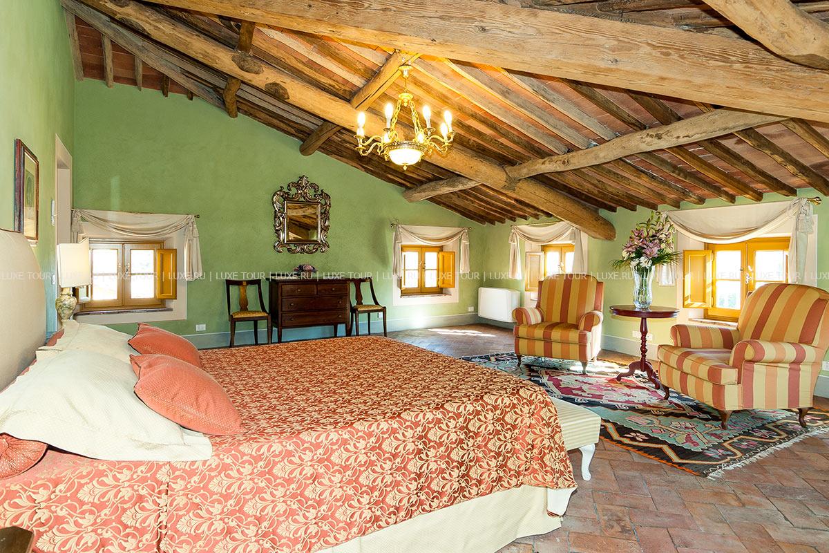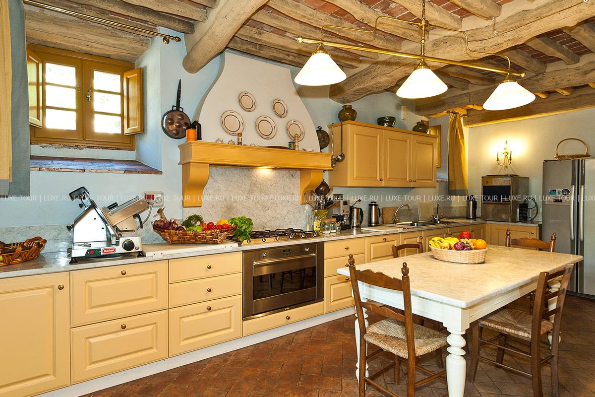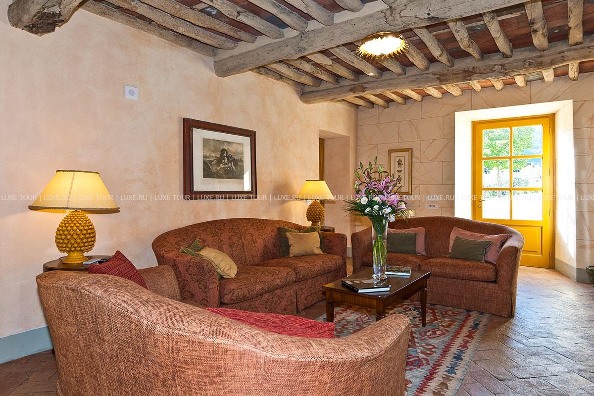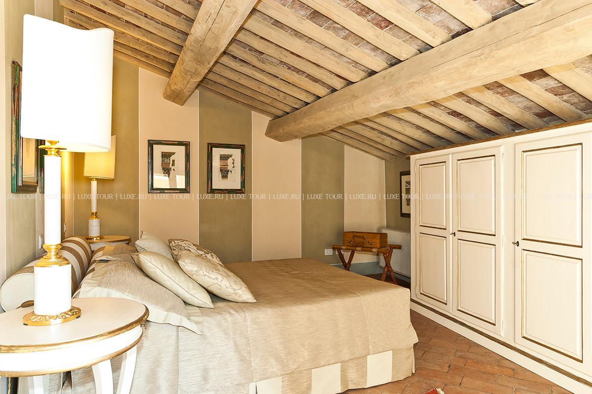Здание было недавно отреставрировано и соответствует теперь высочайшим стандартам, сохранив при этом традиционный тосканский характер. Чудесные полы, выложенные плиткой терракота, и открытые балки декорируют каждую комнату, стены некоторых из нижних комнат украшены фресками.