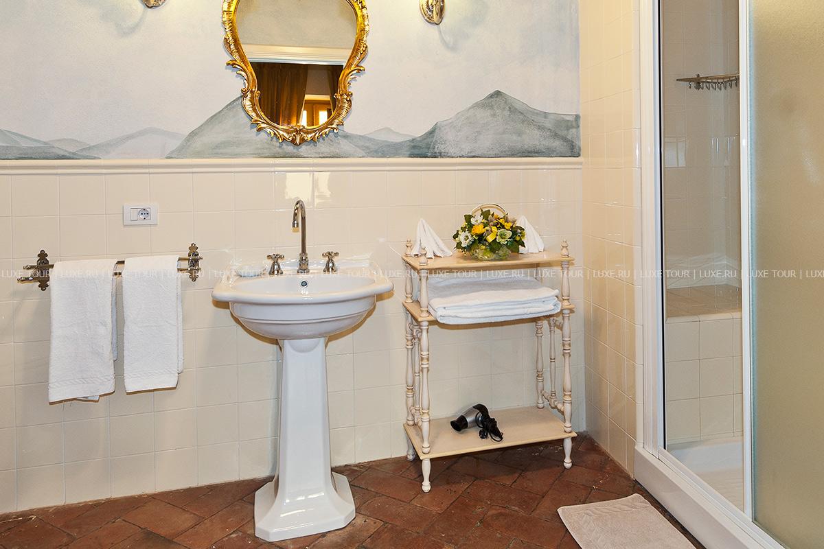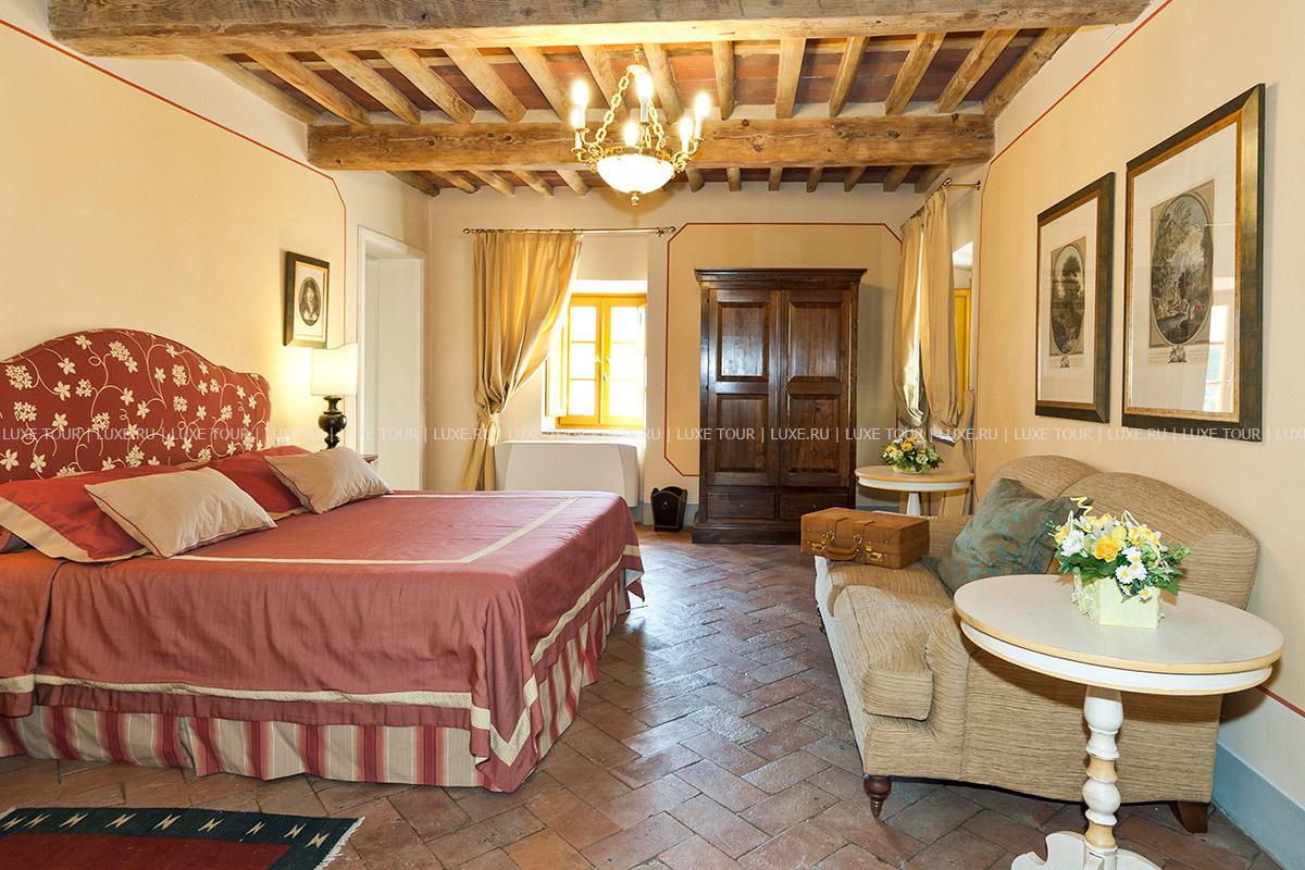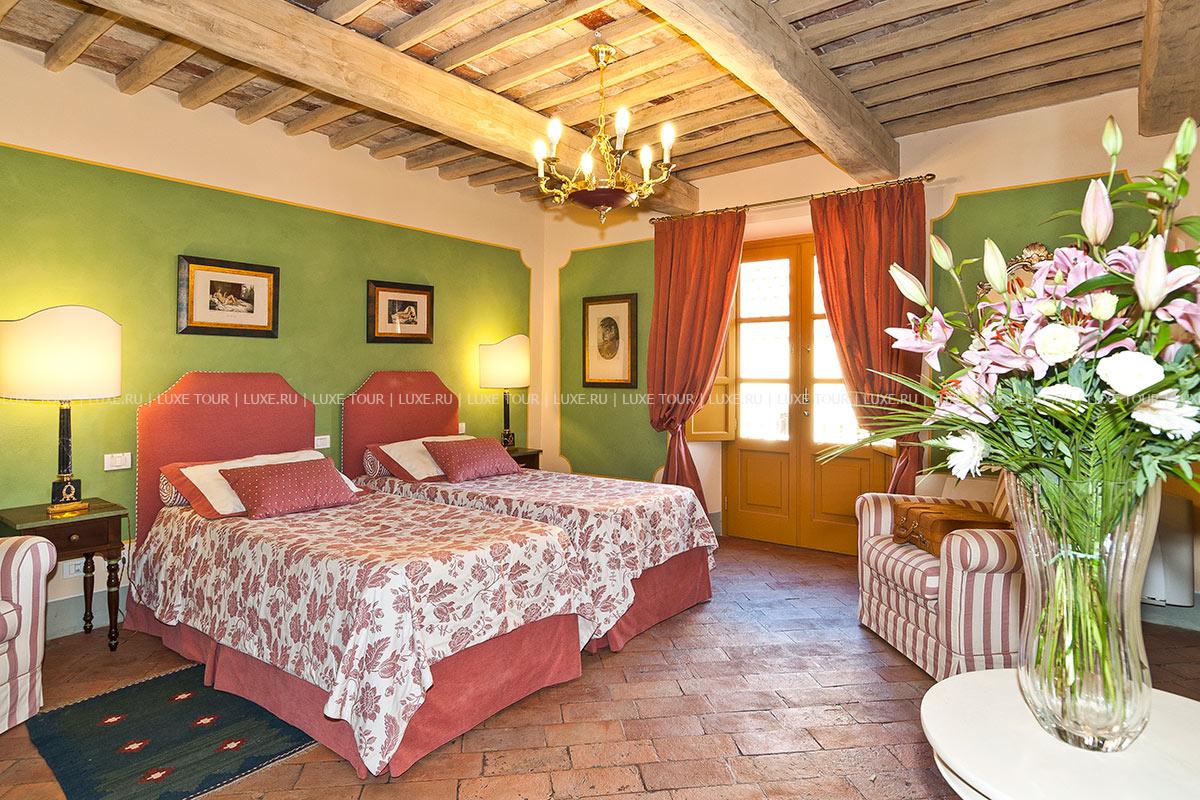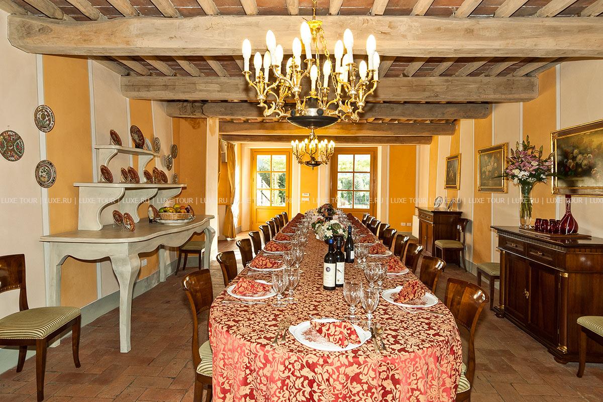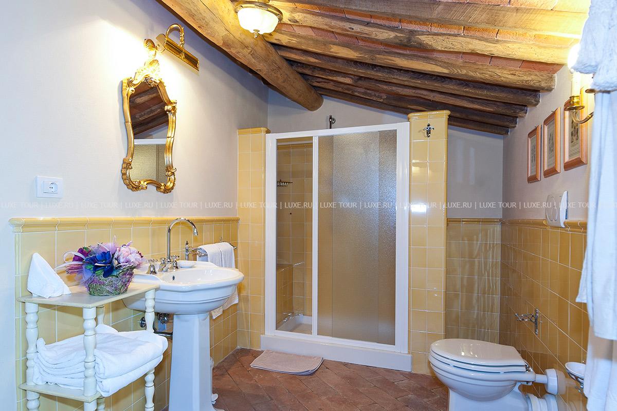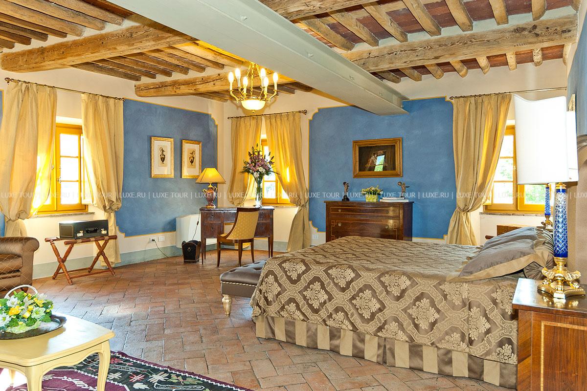 Здание было недавно отреставрировано и соответствует теперь высочайшим стандартам, сохранив при этом традиционный тосканский характер. Чудесные полы, выложенные плиткой терракота, и открытые балки декорируют каждую комнату, стены некоторых из нижних комнат украшены фресками.