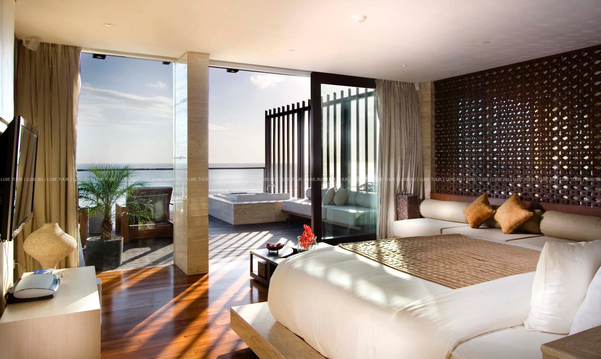 Новый комфортабельный Anantara Seminyak Bali Resort & Spa Бали раскинулся на 3500 м2 великолепной прибрежной территории, среди раскидистых кокосовых пальм, благоухающей тропической зелени, у просторного пляжа и прозрачных вод Индийского океана. Роскошные виллы комплекса выполнены в современном стиле и дополнены традиционными балийскими мотивами: отделка из темного дерева, стеклянные раздвижные двери и уютные террасы, откуда открывается изумительный вид на гладь океана и пышные сады.