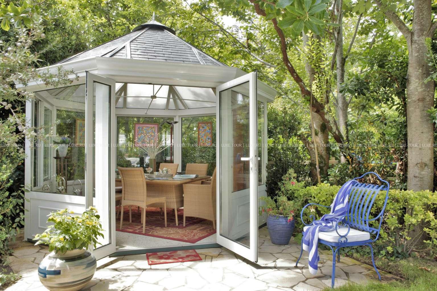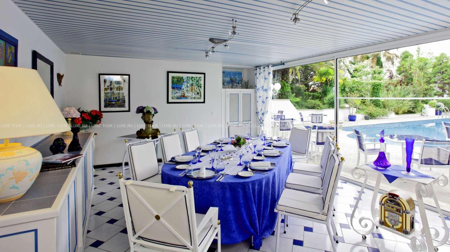 В теплое время года столики сервируют на открытой террасе у бассейна.