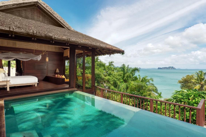 - 154 м2. Состоит из спальни, гостиной, ванной комнаты, террасы с шезлонгами и обеденной зоной на открытом воздухе, бассейна. Вид на океан. Прямой выход к пляжу. Максимальное размещение — 3 человека.