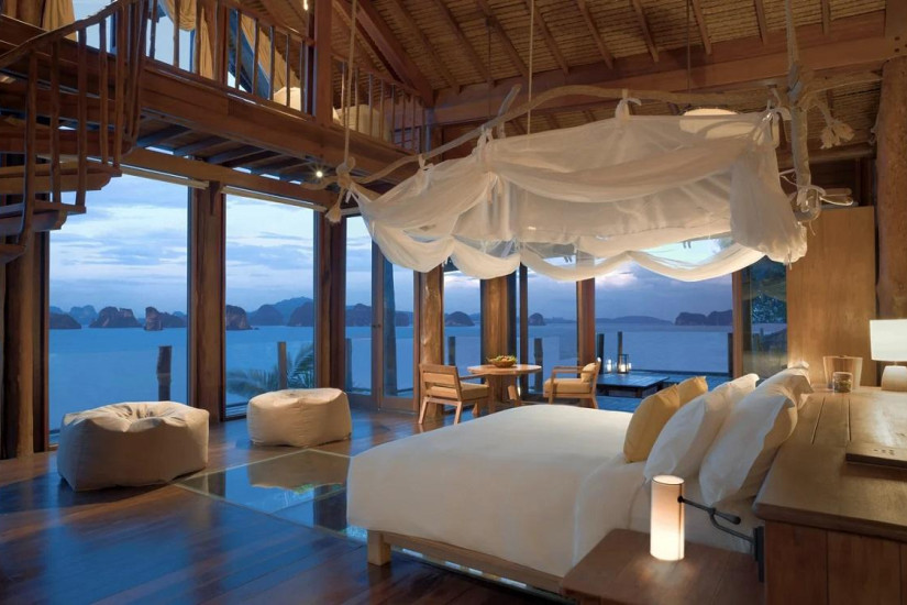 - 225 м2. Состоит из спальни, ванной комнаты, частного кинотеатра и тренажерного зала, террасы с шезлонгами и обеденной зоной на свежем воздухе, беседки и бассейна. Панорамный вид на океан. Максимальное размещение — 2 человека.