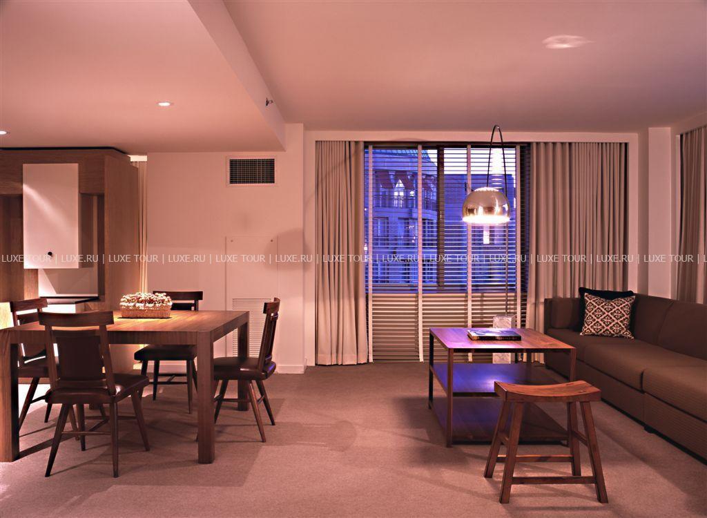 Park Hyatt Washington США — комфортабельный отель, расположенный рядом с историческими достопримечательностями Вашингтона, представляет высокий уровень комфорта и уникальные интерьеры от известного дизайнера Тони Чи (Tony Chi). Все помещения отеля изобилуют пространством и светом, которые подчеркнуты отделкой из стекла, камня, мягким освещением и оригинальными дизайнерскими решениями. Декор номеров также отличается изысканным современным стилем: натуральное дерево, удобная мебель, украшения в этническом стиле, полки с книгами по истории и искусству Америки. Здесь есть все условия для отдыха и работы — от комфортабельных номеров, отличного фитнес-центра с бассейном, ресторана с превосходной кухней, уютного бара и чайной гостиной до многочисленных конференц-залов и современно оснащенного бизнес-центра.