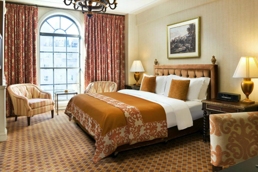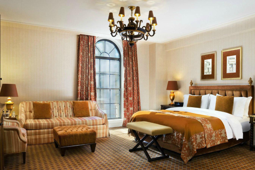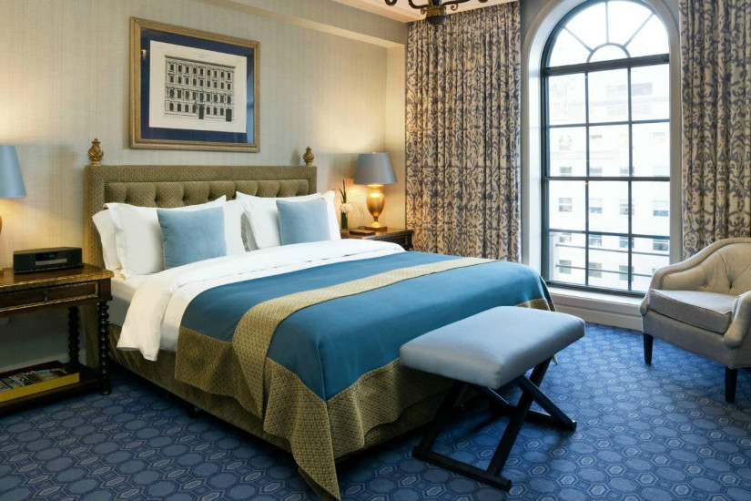 - 233 м2. Роскошный номер, оформленный известной дизайнерской компанией Sills Huniford, имеет два входа, один из которых ведет в фойе, украшенное обоями с китайской ручной росписью, другой - в столовую, также номер включает просторную гостиную с двумя каминами, столовую на 10 человек с примыкающей кухней для прислуги, библиотеку, спальню с кроватью king-size, ванную комнату с двумя гардеробными, гостевую туалетную комнату. Может объединяться с Superior King Room, образуя номер с двумя спальнями.