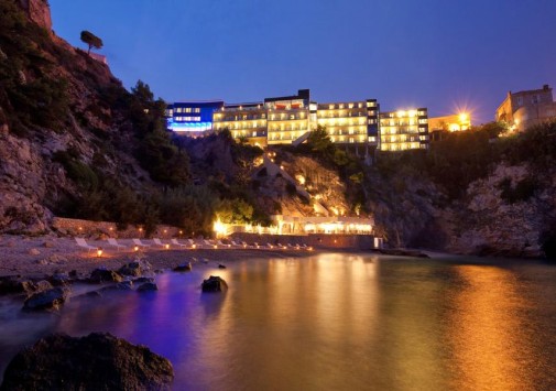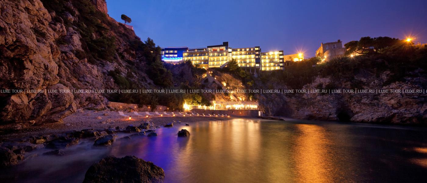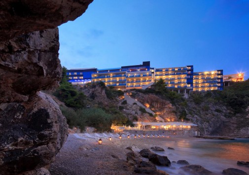 Отель расположен на скале, возвышающейся на высоте 30 м над заливом Мирамаре (Miramare), в 800 м от Старого города и в 20 км (40 минутах езды) от международного аэропорта Дубровника.