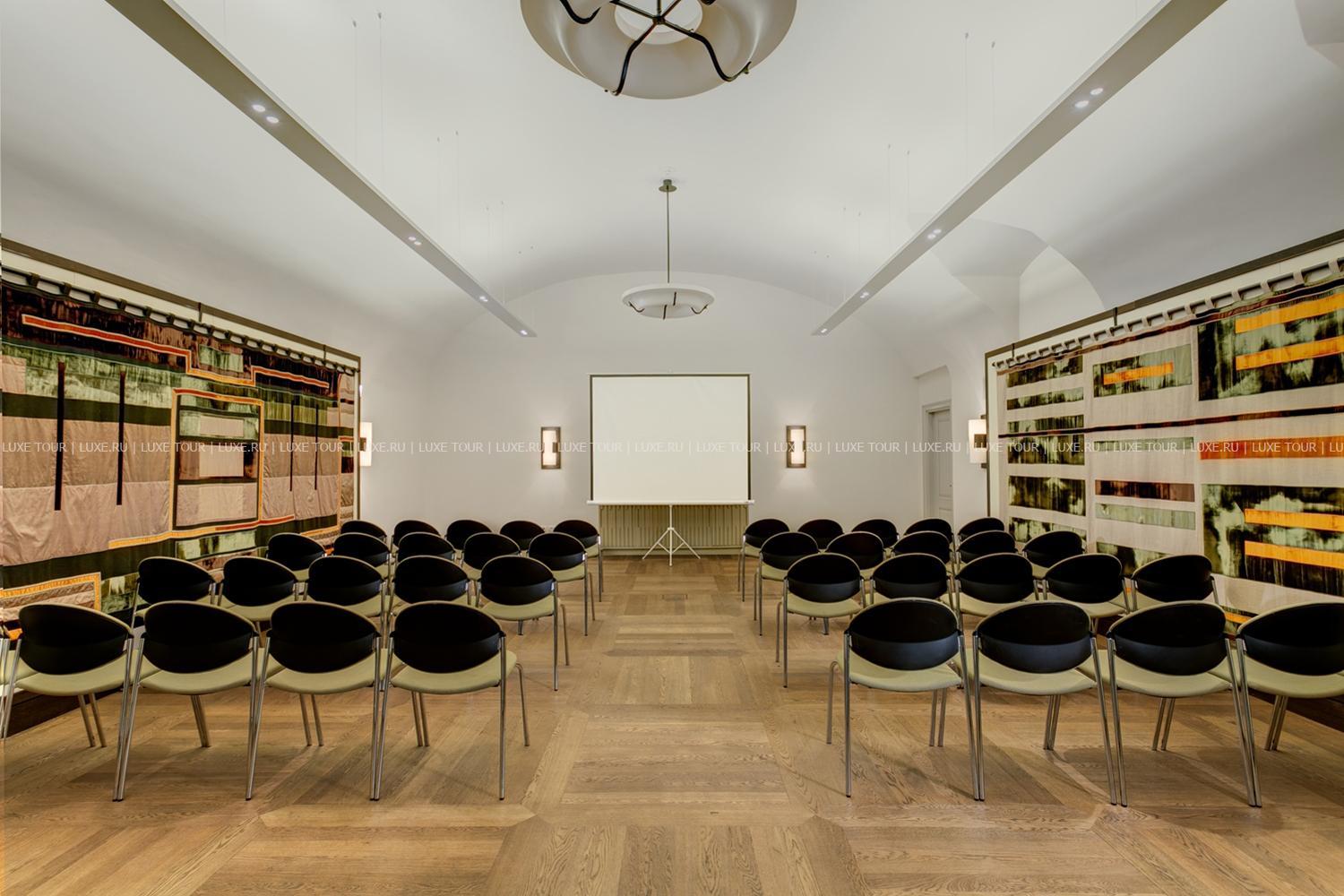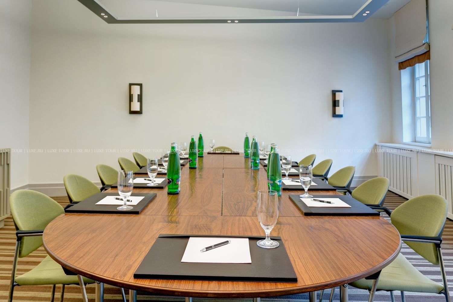 Для гостей — конференц-зал (196 м2), 4 зала для заседаний, 2 переговорные комнаты, бизнес-центр, автомобильная парковка.