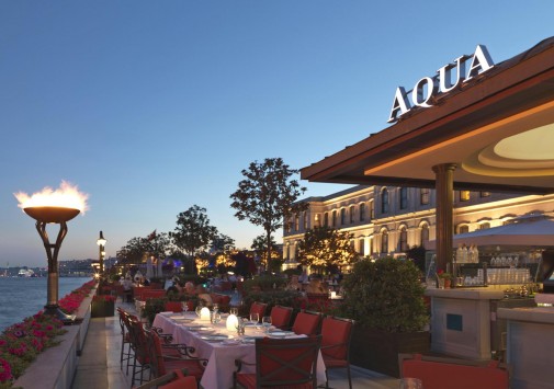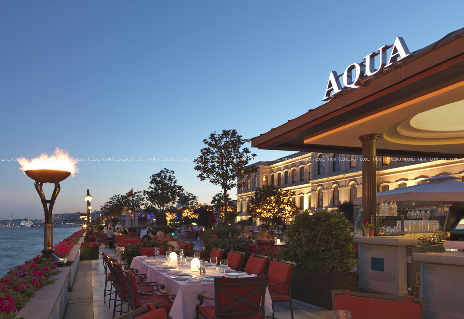 • Aqua — элегантный ресторан с видом на Босфор, представляющий изысканную средиземноморскую кухню, итальянские и турецкие деликатесы, а также фирменные блюда из рыбы и мяса.