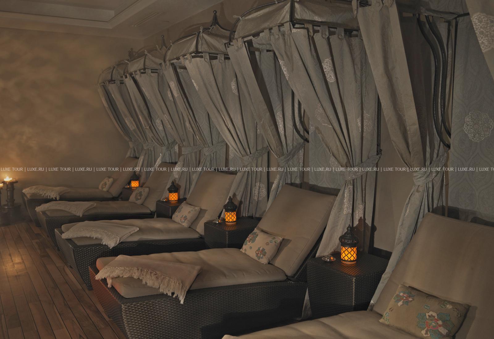 Отель располагает великолепным СПА центром площадью 2100 м2, где есть открытый бассейн, выходящий на Босфор, с террасой для отдыха, джакузи, крытый бассейн, сауны, парные, хаммамы для мужчин и женщин, тренажерный зал, студия аэробики, а также 10 процедурных кабинетов, где предложен широкий выбор различных видов массажа и программ по уходу за лицом и телом.