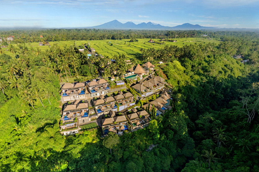 - просторная вилла вилла с высокой соломенной крышей из аланг-аланга и потрясающим видом на долину реки Петану. Состоит из спальни, отделанной мрамором ванной комнаты, гостиной, выходящей на личный плавательный бассейн, открытого обеденного павильона, бассейна и сада.