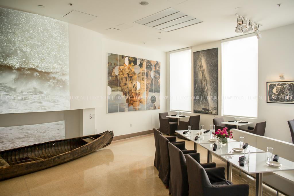 Элегантный ресторан Gallery, украшенный произведениями современного искусства, предлагает изысканные блюда интернациональной кухни.