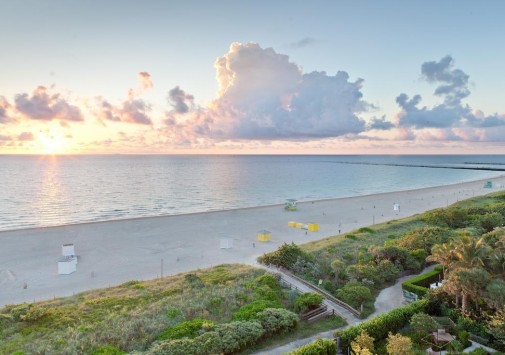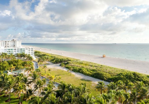 Современный и стильный South Beach Marriott, Майами, расположен в центре города неподалеку от пляжа South Beach, на углу улицы Ocean Drive с ресторанами и шикарными бутиками, известной здесь под именем South of 5st Street или SoFi. South Beach Marriott, Майами, предоставляет гостям восхитительный вид на Атлантический океан, знаменитый сервис Marriott®, прекрасные условия для проживания и всевозможные развлечения — от белоснежного пляжа и близко расположенного гольф-клуба до бурлящей ночной жизни. 12-этажное светлое здание этого отеля выполнено в стиле ар-деко. Дизайн интерьеров функционален и элегантен своей лаконичностью — морская палитра тонов усиливает обилие естественного освещения, переливы набивного шелка и мягкие ковровые покрытия сглаживают геометрические формы современной мебели, а зеркала в широких серебристых рамах и небольшие цветочные композиции вносят необходимое разнообразие во внутреннее убранство. В ресторане, баре и кофейне отеля предлагается традиционное меню американской кухни, дополненное винами, коктейлями, кофе и прохладительными напитками. Также для гостей — фитнес-центр, залы для банкетов и заседаний, бизнес-центр, сувенирный магазин, бассейн.