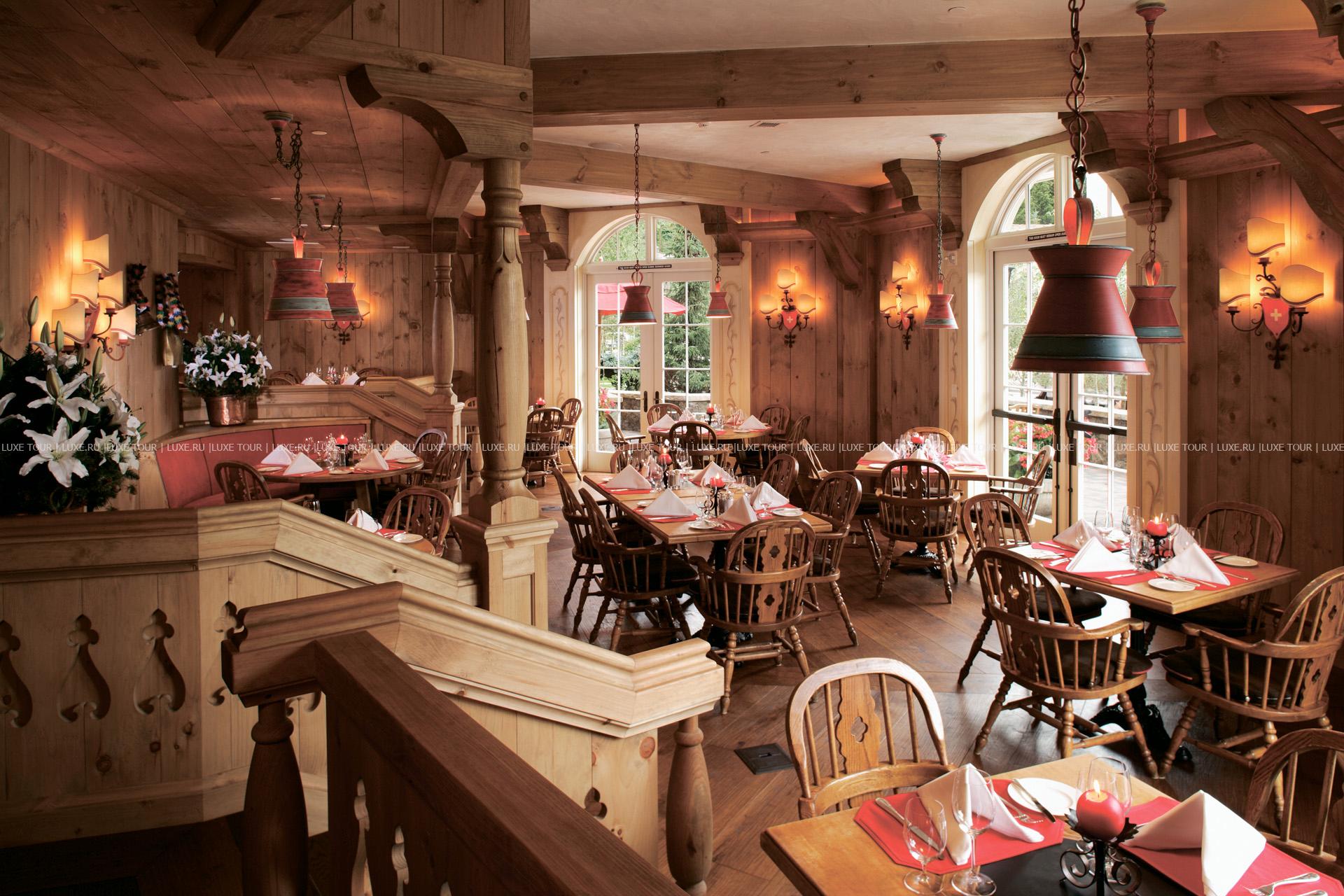 В уютном, отделанном деревом, ресторане Swiss Chalet можно отведать традиционные альпийские блюда, восхитительное фондю, а также домашнюю выпечку и десерты.