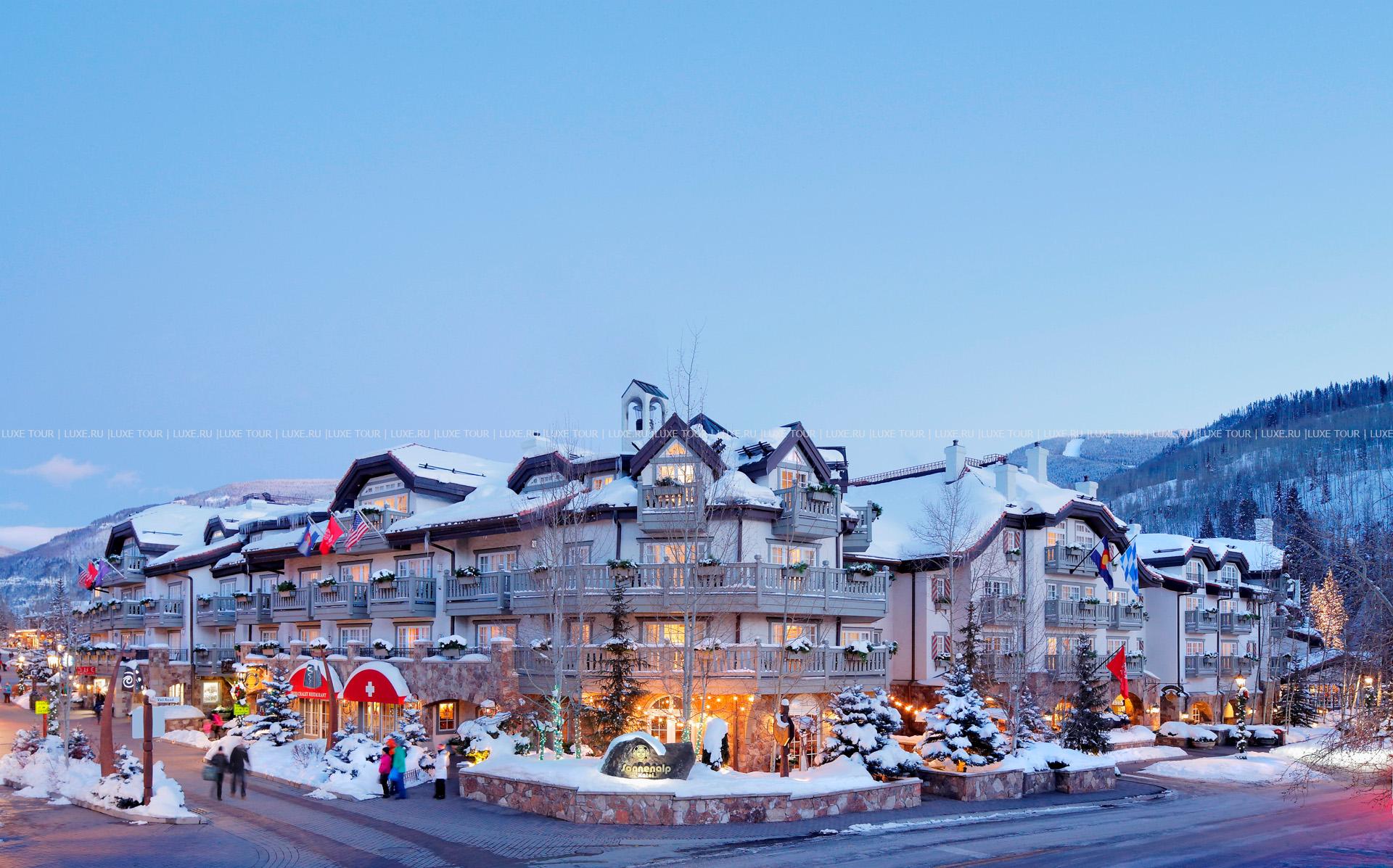 Sonnenalp Resort & Spa США — элегантный комфортабельный отель, расположенный в самом центре горнолыжного курорта Вэйл. Отель был основан в 1979 г. семьей из Баварии, и с тех пор прочно удерживает высокие стандарты сервиса в сочетании с атмосферой гостеприимного уюта. Номера, представленные на любой вкус, отличаются изысканными интерьерами в альпийском стиле и современным комфортом. К услугам гостей — бассейн с крытой и открытой секциями, прекрасно оборудованный СПА центр, разнообразие спортивных развлечений, включая собственное поле для гольфа в 20 минутах езды от отеля, а также четыре ресторана с превосходной кухней, элегантный бар с живой музыкой и современно оснащенный конференц-центр.