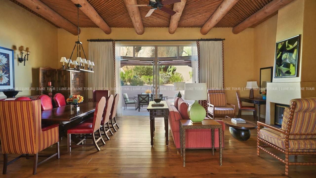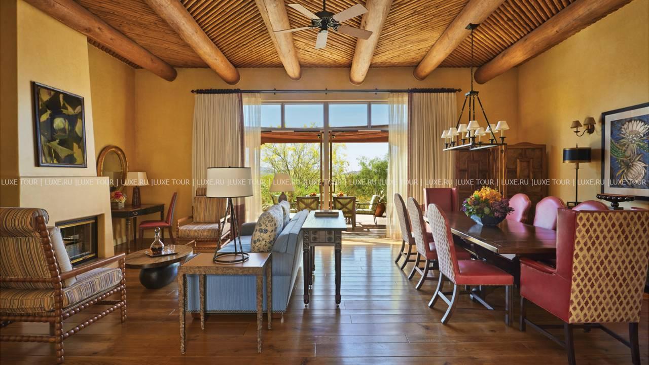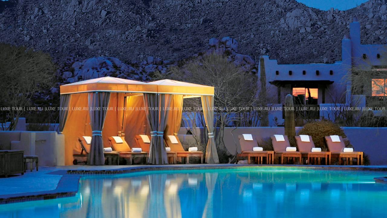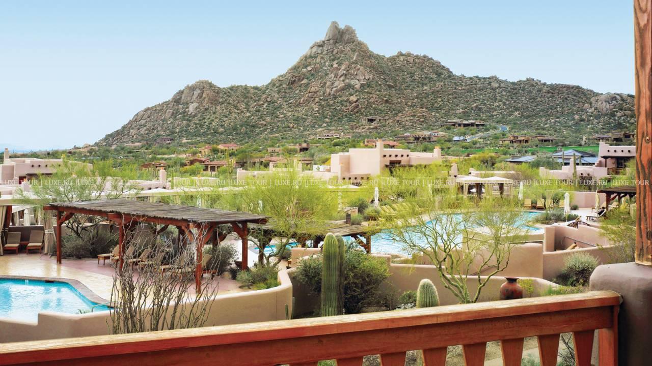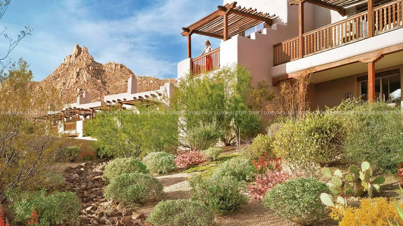 Four Seasons Resort Scottsdale at Troon North США — фешенебельный отель, расположенный у подножья вершин Pinnacle, в живописной пустыне Sonoran и в нескольких минутах езды от знаменитых гольф-полей Troon North. Отель сочетает утонченную роскошь и самобытность традиций юго-западной Америки. Элегантные номера, оборудованные по последнему слову техники, расположены в зданиях, стилизованных под мексиканские саманные строения, интерьеры номеров декорированы оригинальными тканевыми изделиями работы индейцев уичоли, а с балконов и террас номеров открывается потрясающий вид на завораживающие ландшафты Солнечной долины и пики гор. К услугам гостей — СПА и фитнес-центры, огромный бассейн, теннисные корты, разнообразие спортивных развлечений для взрослых и детей. Три ресторана восхищают превосходной кухней, а стильный бар — отличным выбором напитков. Для деловых и торжественных мероприятий в отеле имеется современно оснащенный бизнес-центр и многочисленные конференц-залы.