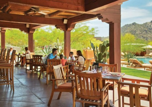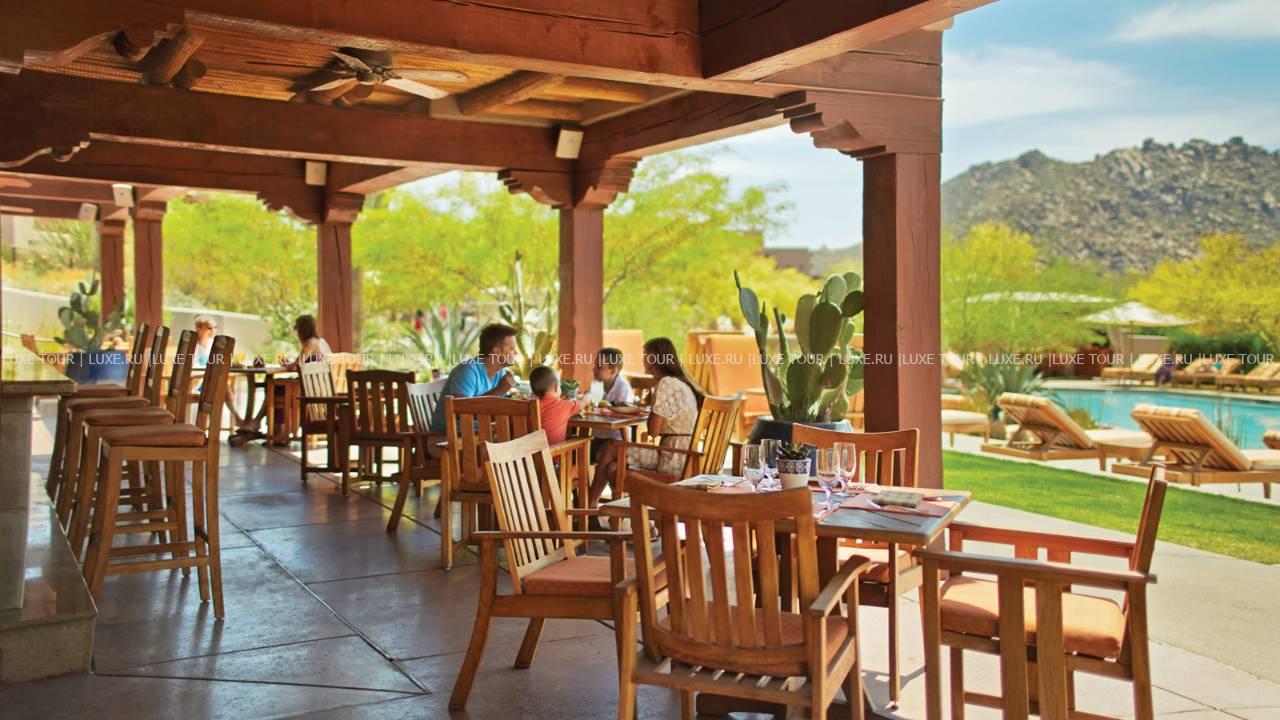 На открытой террасе ресторана Saguaro Blossom, расположенного у бассейна, подаются легкие блюда и различные напитки.