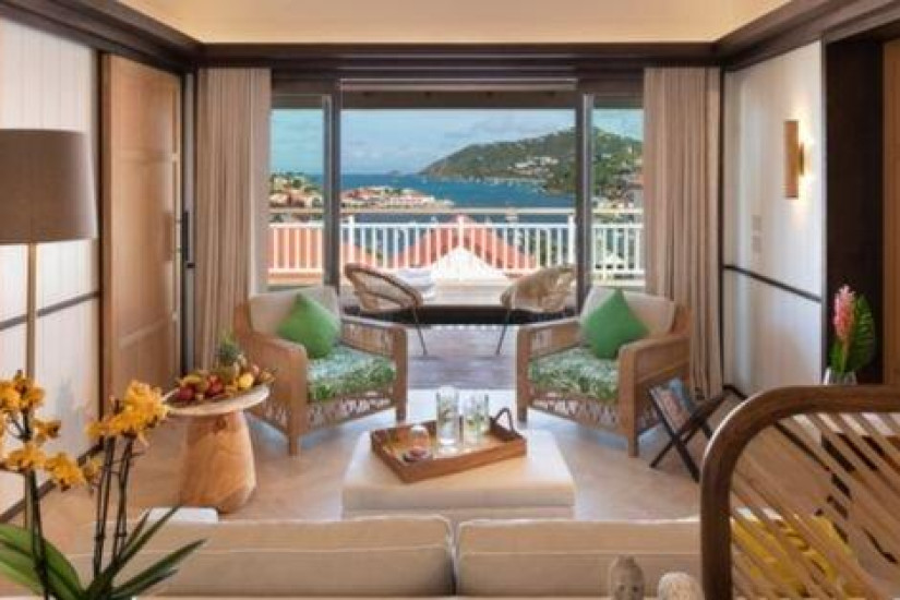 67м2 + терраса 82м2. Двухуровневый номер с террасой на крыше и живописными видами на порт Густавии расположен на первом этаже главного здания. Состоит из спальни c кроватью king-size, гостиной, ванной комнаты с ванной, душа на открытом воздухе, двух террас, одна из которых с гидромассажной ванной.