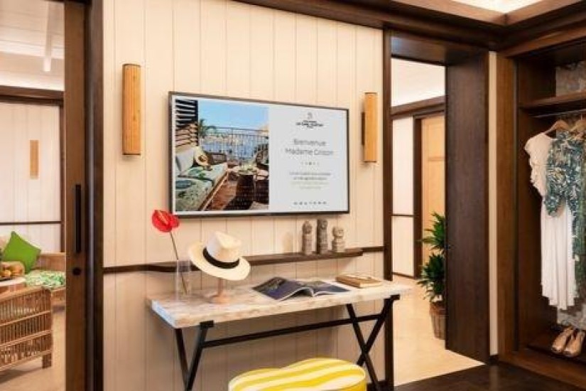 67м2 + терраса 30м2. Номер расположен на первом этаже главного здания и окружен всеми оттенками голубого моря и неба. Великолепная спальня выполнена в фирменном французском стиле Barrière. Состоит из спальни c кроватью king-size, гостиной, ванной комнаты с ванной, душа на открытом воздухе, террасы, небольшого бассейна. Вид на море.