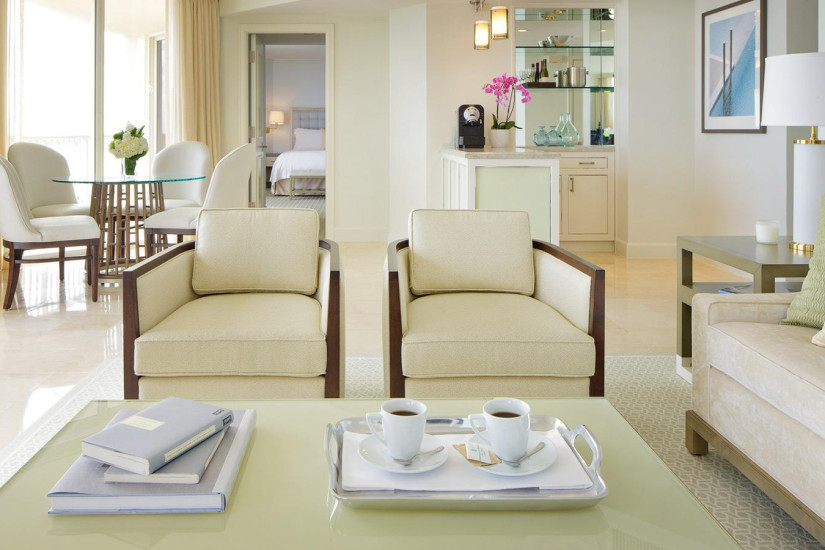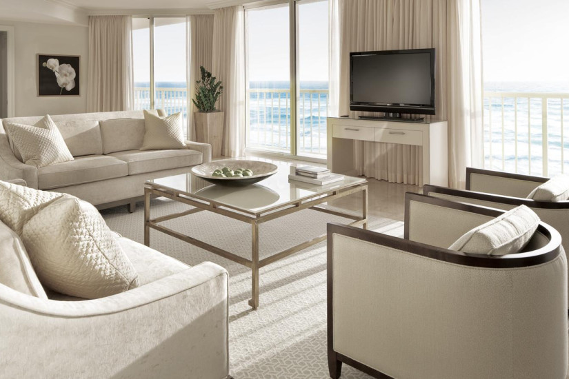 - 127 м2. Фешенебельный номер, расположен на 5 этаже, состоит из 2 спальни (с кроватями king-size, просторной гостиной с обеденной зоной на четверых (в одном из номеров имеется рояль), 2 ванных комнат, гостевой туалетной комнаты, 2 балконов с видом на океан, и небольшого французского балкона. Максимальное размещение - 6 взрослых или 4 взрослых + 2 ребенка. Возможно присоединение дополнительных спален.
