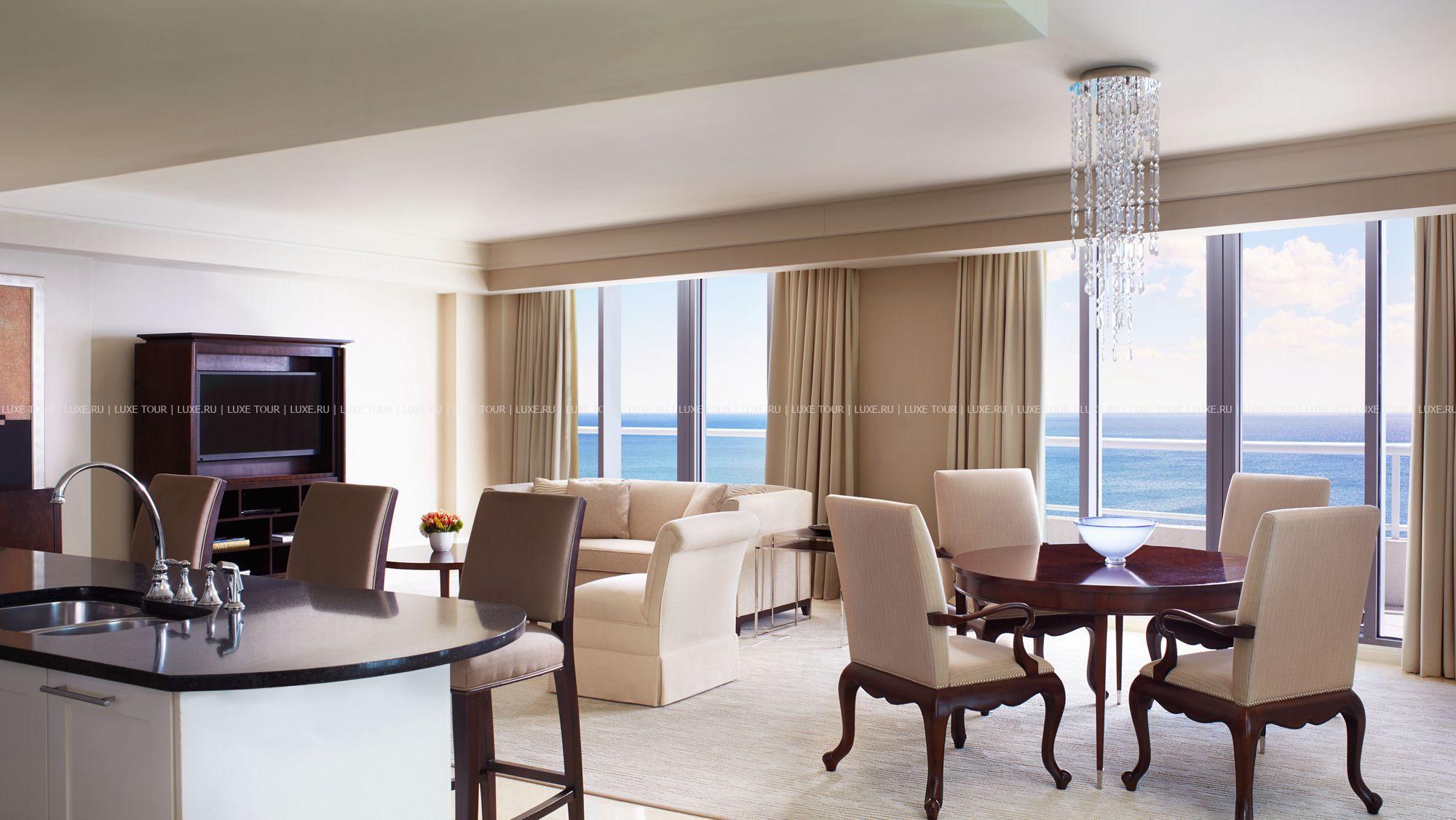 Современное белоснежное здание The Ritz-Carlton, Fort Lauderdale США возвышается на самом берегу Атлантического океана, рядом с пляжем и многочисленными развлечениями знаменитого курорта Форт Лордердейл. Этот новый отель предлагает гостям эксклюзивные условия для отдыха: просторные комфортабельные номера с роскошной обстановкой и живописным видом на океан и береговой канал; отличные СПА и фитнес-центры, огромный бассейн с террасой для отдыха, ресторан, где можно отведать деликатесы из местных морепродуктов, открытое кафе у бассейна и винный бар с богатой коллекцией лучших вин и шотландского виски. Современно оснащенные конференц-залы общей площадью более 2000 м2 обеспечивают все условия для деловых встреч и различных торжеств.