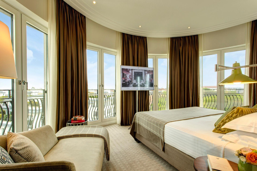 - 200 м2. Роскошный номер, украшенный картинами работы художника 19 века – Франца фон Ленбаха (Franz von Lenbach), расположен на последнем этаже отеля и состоит из спальни с кроватью king-size, гостиной с роялем, столовой, кухни, гардеробной, ванной комнаты с ванной, душевой кабиной, парной и телевизором, террасы с видом на Альпы и исторический центр города. Возможно соединение номеров.