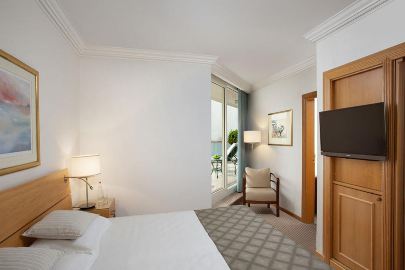 - состоит из просторной гостиной с обеденной зоной, спальни, ванной комнаты, большой террасы с джакузи и зоной отдыха, выходящей на море. Возможно присоединение дополнительной спальни (по запросу).Гостям номера предоставляется VIP сервис, бесплатный вход в Health Club и СПА, отдельный ресепшен.